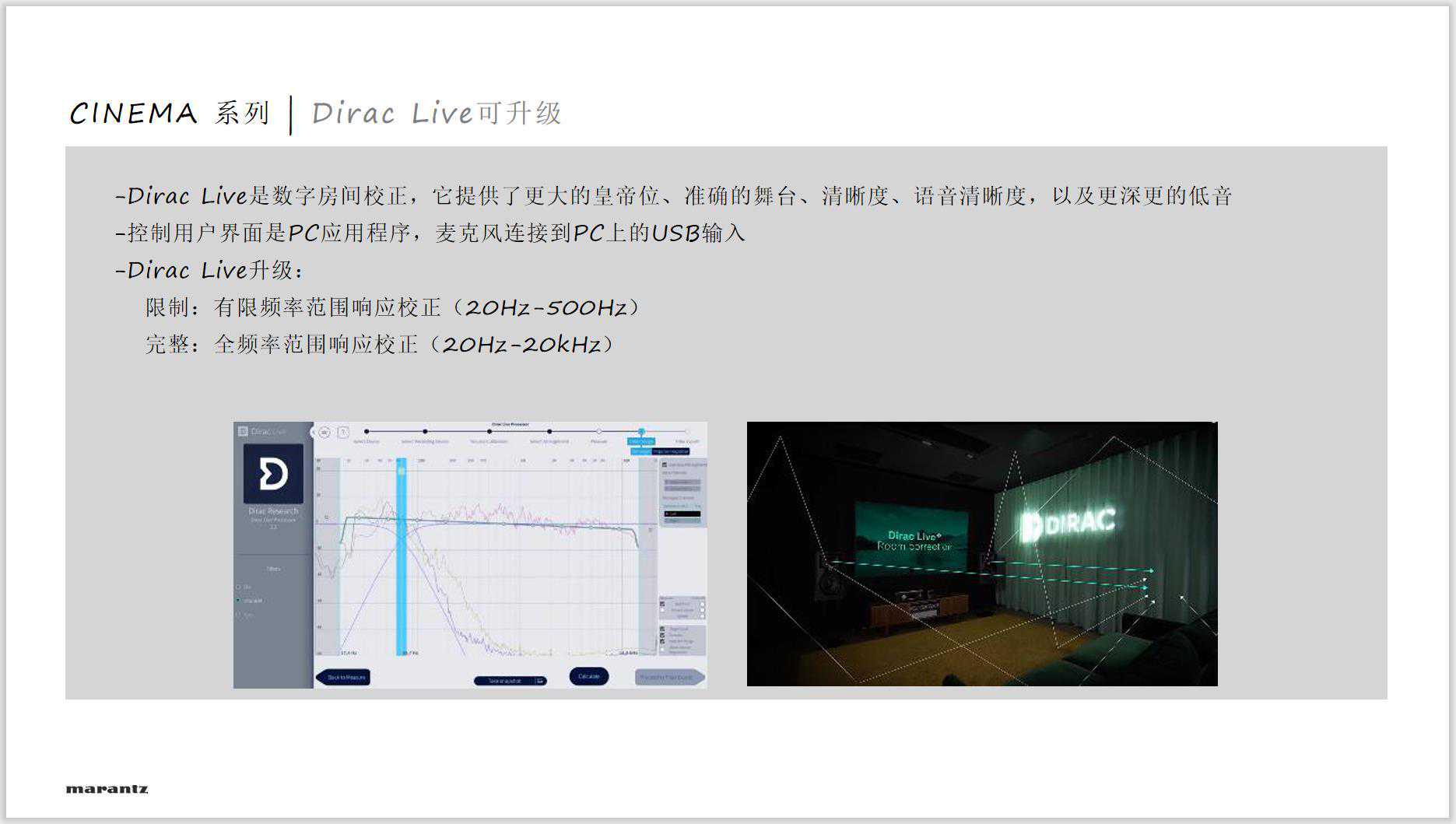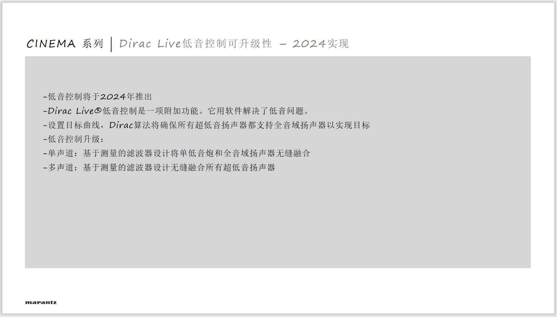 Cinema系列从50开始支持11.4声道,支持所有主流多声道解码,并在硬件上支持Dirac。