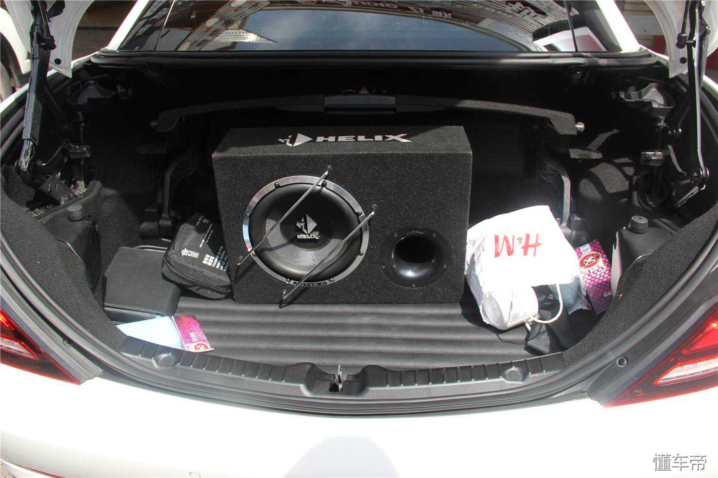 盖上后,即使该大哥的后尾箱东西有点多,低音炮德国HELLXP10E还是依旧那么引人注目。