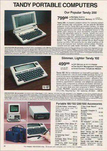 TRS-80Model100也有自己的后续版本——改进型TRS-80Model102(被称为TANDY102),以及拥有更大的可翻折屏幕的TRS-80Model200(TANDY200)。TANDY200在外形上已经和现代笔记本几乎没有差别了。