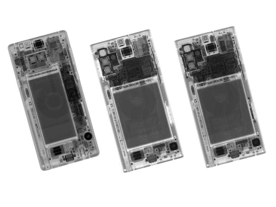 X光图,从左到右分别是Note9、Note10+和Note10+5G版。
