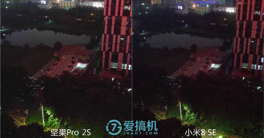 光线变差之后,能一直压小米8SE一头。小米这边测光更加接近肉眼所见的,但无奈抗眩光、白平衡、降噪不争气。坚果的噪点虽然也苍劲有力,但都很细碎。