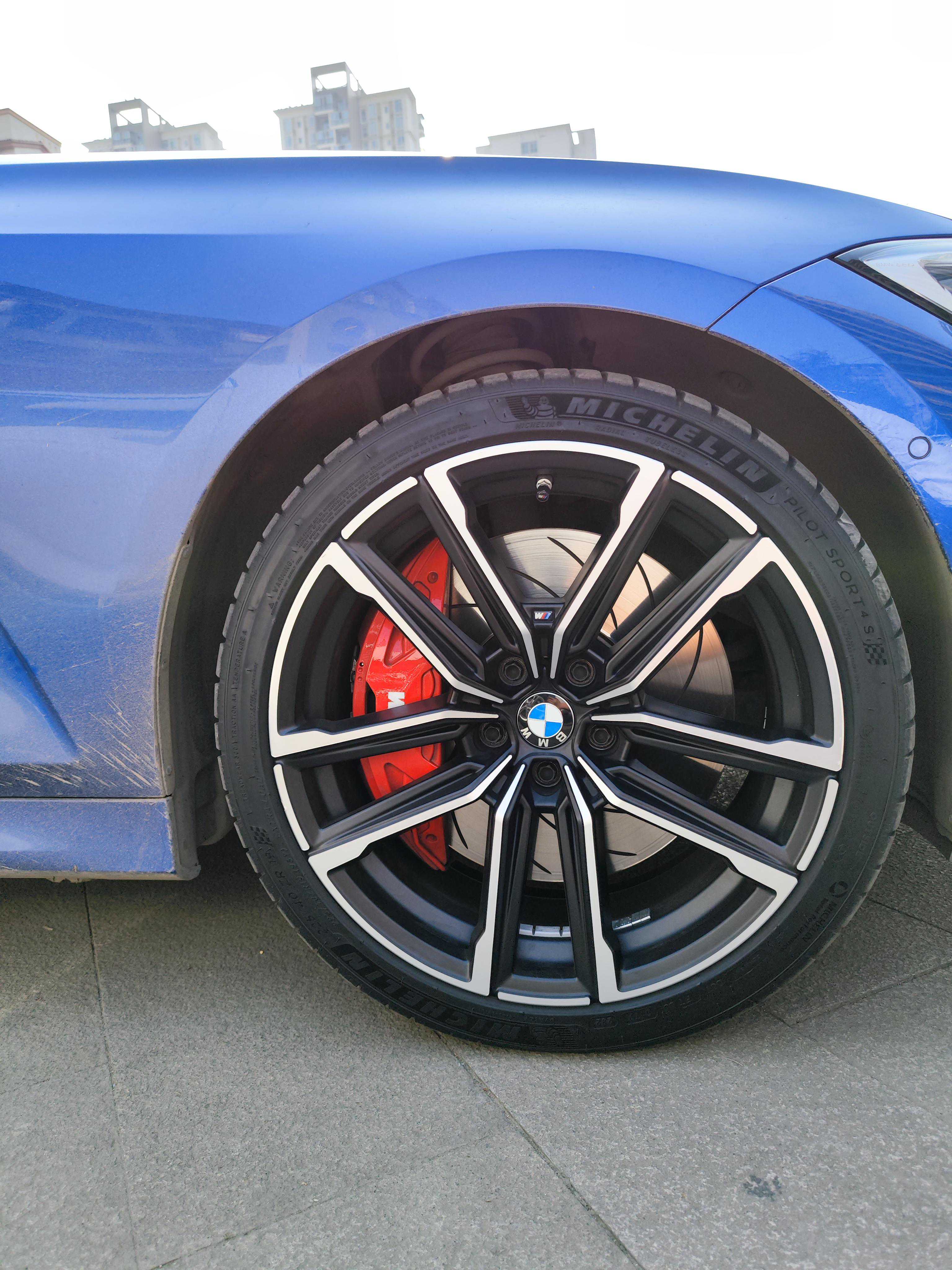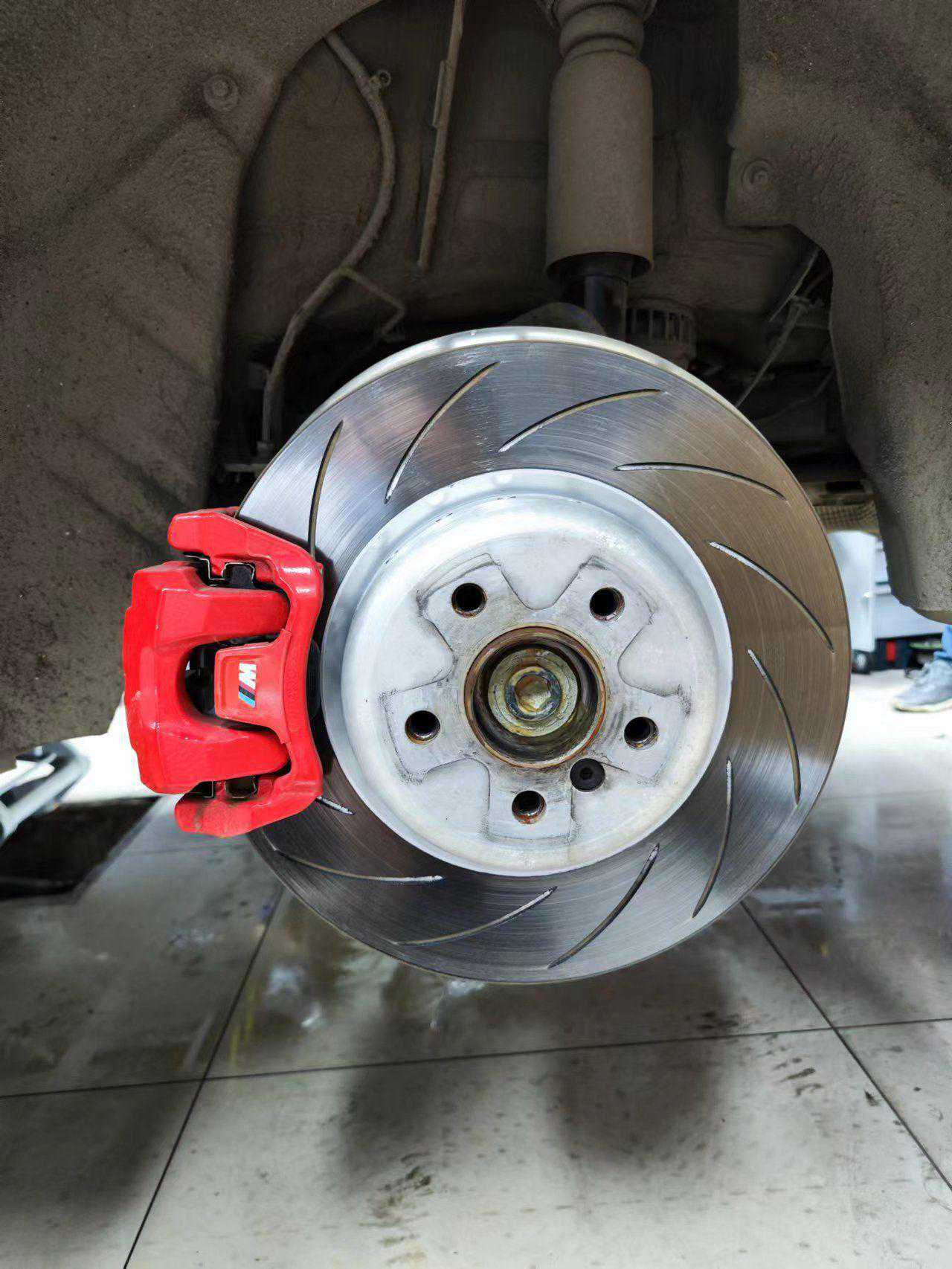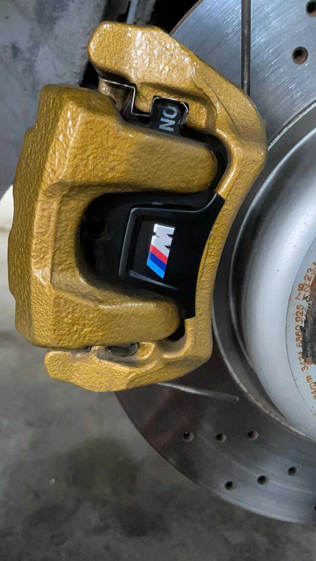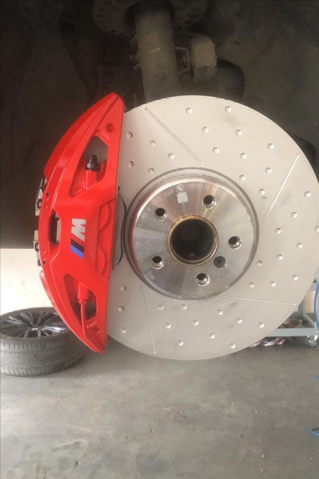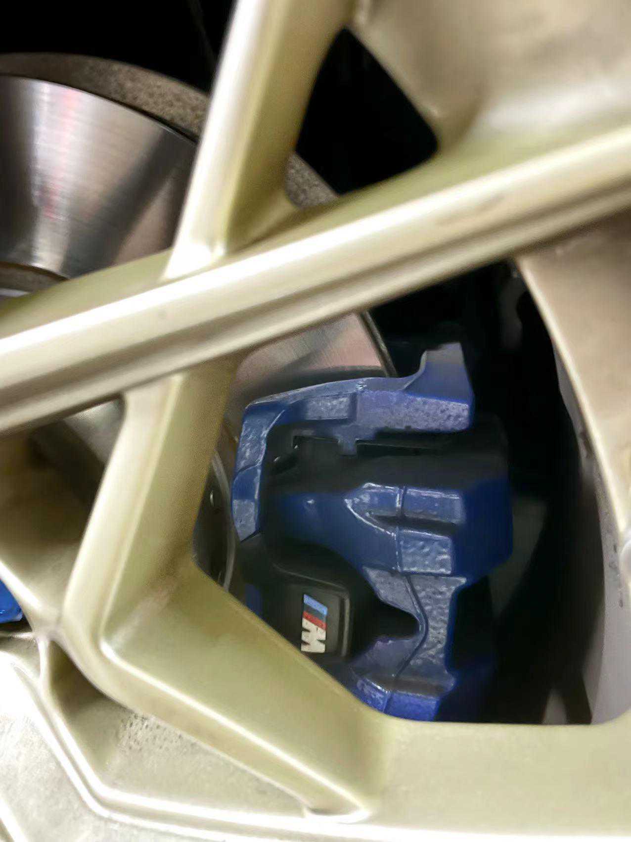 2021年5月也是缘分,遇到一套拆车无色的前四后一,前轮348MP+后轮345TRW的组合,自己捣鼓烤漆以后就装车了,自己原车325没更换大力鼓推着始终软点儿,后来升级19寸以后,又觉得前轮348MP不饱满了,加上自己蓝色车搭配蓝色卡钳不够骚气,后来遇到一个MP大力鼓以后,干脆一不做二不休的把前轮换成了红色374MP卡钳,后轮TRW蓝色改红色,我的散装MP就上线了,哈哈哈。
