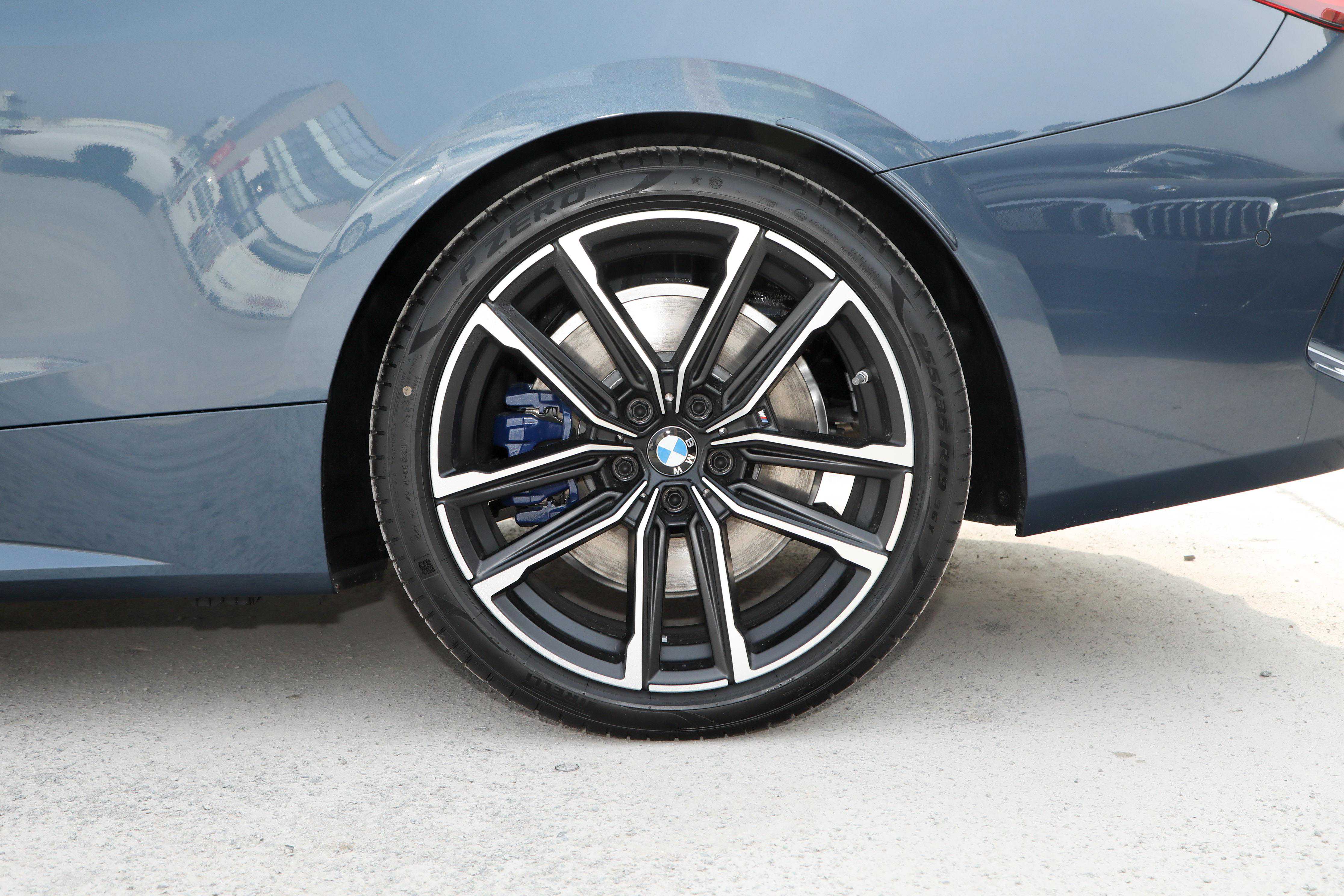 4系选配的刹车,技术参数44mm/345/24,蓝色卡钳配黑色M盖板