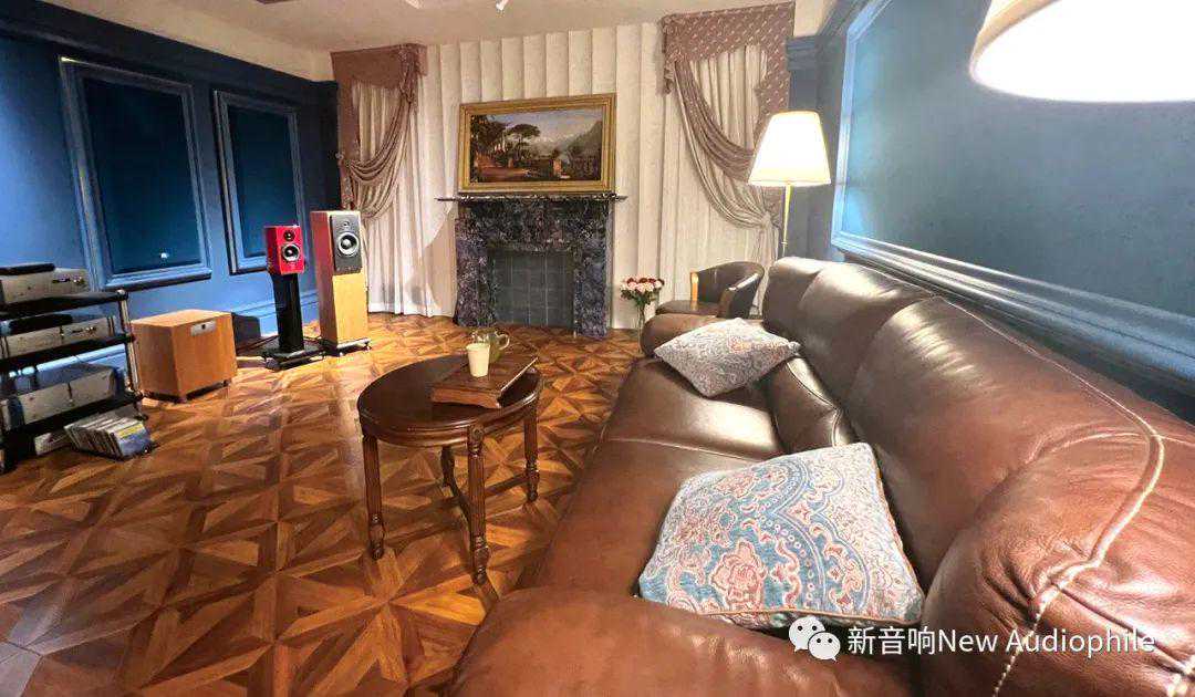 广州力高音响的刘老板移居加拿大多年,过去盛夏时节都在凉爽的温哥华避暑,去年返国后受疫情影响,只能暂时留在国内休整。闲不下来的刘总不但从加拿大引进声学处理材料品牌Primacoustic,还亲自规划了一间新的听音室,把一些声学处理产品不着痕迹的融入装修之中。走进这间与普通家庭客厅尺寸相仿的试音房,首先被特殊的蓝色基调所吸引,其灵感来自力高音响所代理的英国ATC商标。一般家里装修很少用这么深沉的色调,但搭配着原木方块地板,咖啡色真皮沙发与桌椅,加上白色窗帘点缀,看起来却有着欧式高雅气质、简洁大方的元素,在温暖台灯照射下,很容易就放松心情。