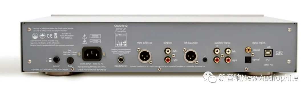 CDA2Mk2的设计初衷是拿来搭配ATC有源音箱,所以结合了USB解码和前级功能,有源音箱用家可方便地组建一套完整的音乐播放系统。第一代的CDA2在2010年推出,完全在英国工厂制造,第二代的CDA2MK2在2018年底上市,解码芯片从Wolfson欧胜(无法解码DSD)换成AKM旭化成AK4490EQ解码芯片(32Bit/384kHz),可硬解DSD256讯号。解码芯片变了周边的线路当然也不一样了,比如电源部分新增了9组稳压,因此从基础上CDA2MK2是全面的升级换代。此外CDA2MK2增加了两组模拟输入,备有同轴/光纤与USB数字输入,USB接口支持32BitDXD与DSD256的讯号。