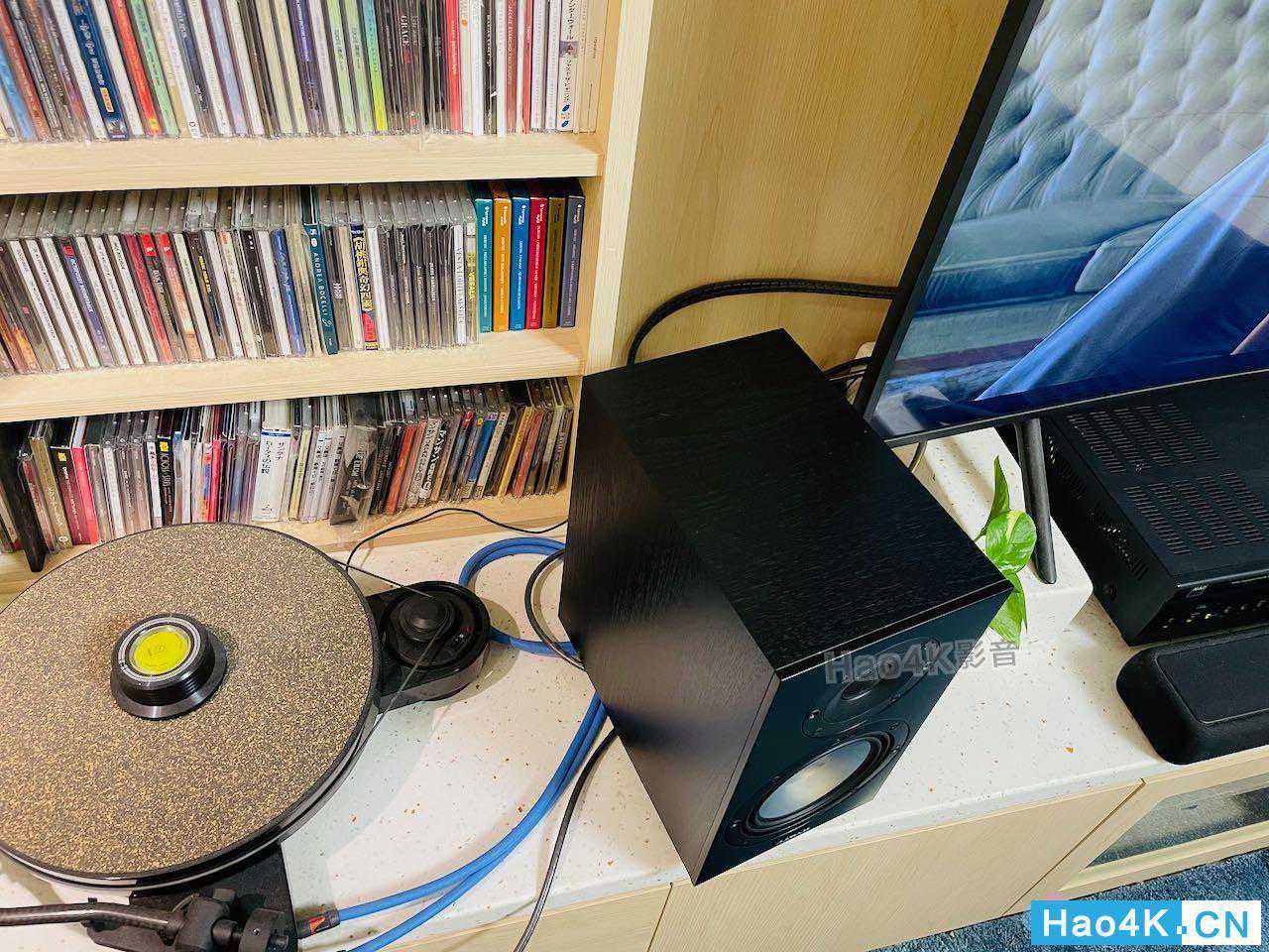 ▲音箱拆箱完毕,看到这里,是要来让进驻的空间,基本上就是电视柜,位于客厅正前方,前面有说,由于安装电视的时候,不得已只能将电视立于桌面,因为没有壁挂,所以牺牲了一些桌面空间,然后电视本身有在搭配一款雅马哈的SoundBar。而本身由于有收藏一些黑胶、以及有一定数量的CD,所以我还是倾向把两声道系统独立出来,但是又与电视系统摆放在同一位置的使用方式。