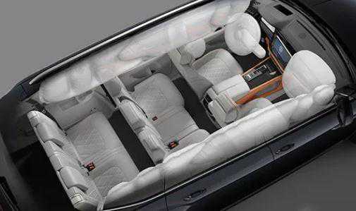 全系主驾配备正面安全气囊1个、副驾正面安全气囊1个、前排侧安全气囊2个、前后排头部安全气帘2个、主驾膝部安全气囊1个;