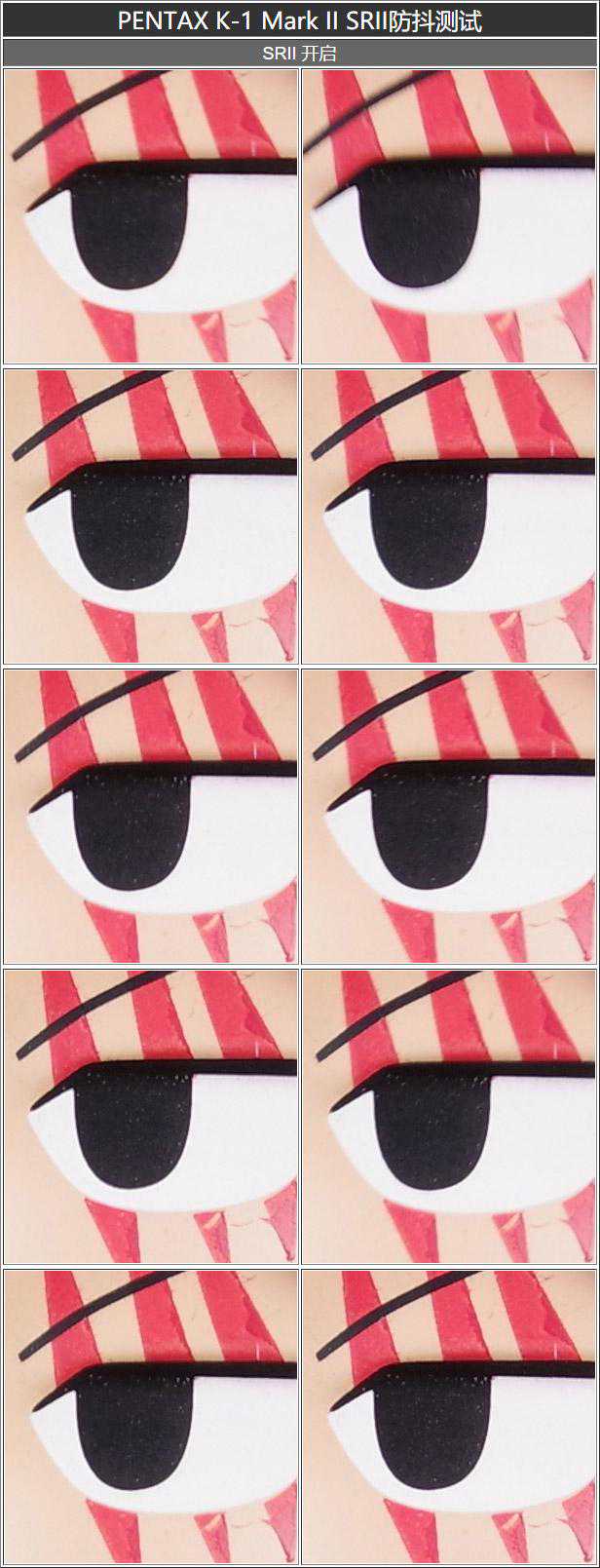 通过两组测试图的对比,我们可以很明显的看出PENTAXK-1MarkII的SRII防抖机构的作用。在关闭的情况下,我们只获得了2-3张勉强能使用的图片。而开启后,拍摄成功率直线上升。