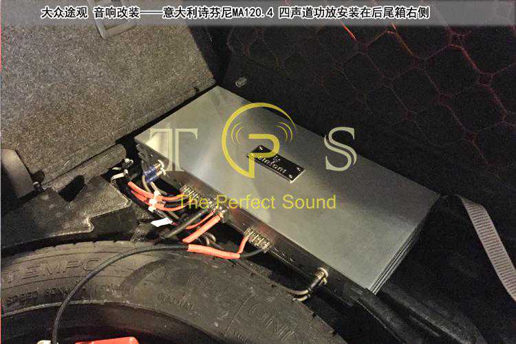 功放安装在后尾箱,把备胎右侧的工具槽泡棉切掉些,安装功放非常恰当!
