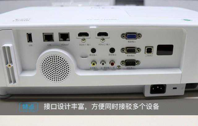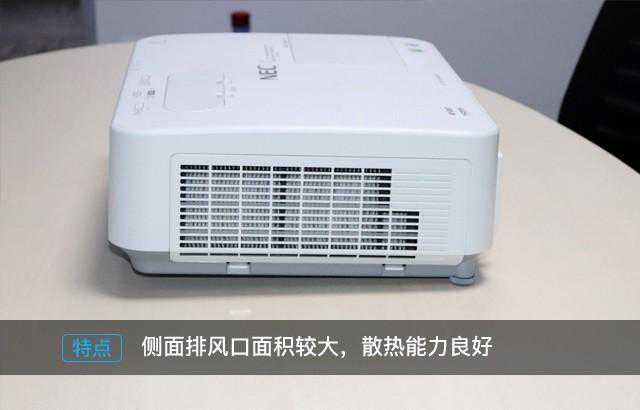 NECCF6600U商务投影机侧面的排风口面积较大,可以快速把多余的热量散发出去,长时间使用也不会出现机器过热的现象。另外机器背面的接口设计丰富,还标配RJ-45局域网端口,即使同时接驳多个设备也毫无压力。