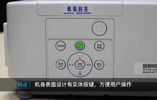 在NECCF6600U商务投影机的上部设计有调整画面位置的旋钮,用户可以根据需要任意调整画面位置,另外在机器的镜头处还有一个操控杆,用户可以通过它调整画面大小,让您的日常使用更方便。NECCF6600U商务投影机的侧面还有实体按键,方便用户在没有遥控器的情况下操作机器。