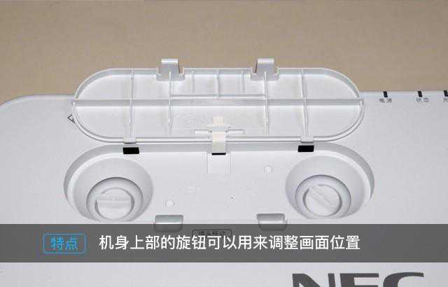 NECCF6600U商务投影机外观干净素雅,机身小巧精致,非常适合放在办公环境当中。机器背面的接口设计丰富,方便同时接驳多个设备。另外在NECCF6600U商务投影机的上部还有调整画面位置的旋钮,日常使用非常便捷。