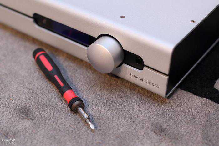 StellarGainCellDAC体积为fullsize,前面板有一个音量控制旋钮,一个显示萤幕与讯源切换钮。在机壳上後方则是散热孔。