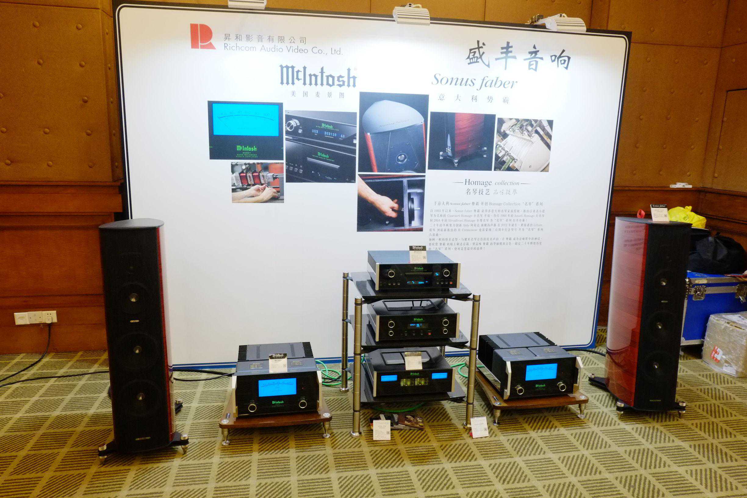 昇和影音主系统以McIntosh麦景图西装搭配SonusFaberAMATIfutura出声。展会期间打出多套促销组合,价格吸引。