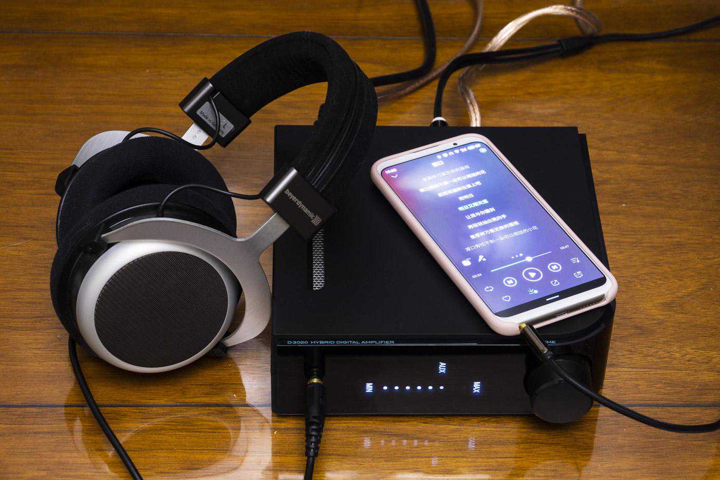 首先在有线连接情况下测试,前端手机输入后通过前端面板耳放输出口到拜亚动力T90,T90的阻抗为250Ω。实际感受NADD3020V2推T90毫无压力,将T90耳机的特点完全发挥出来,高频明亮,通透感极强,古典音乐中的小提琴声清晰顺滑、流行音乐的擦片敲击的还原感非常真实,声场宽阔,中频的长号、圆号充满质感,无论是解析度还是瞬态感都表现出色,低频较为浑厚且弹性十足。流行/摇滚乐中木吉他声音同样明亮通透,吉他拨弦扫弦的声音清晰不刺耳,在电吉他的失真音色、泛音的撕裂感都能非常好的还原。在器乐表现中,低音提琴、大鼓的低频密实有张力,节奏感强,吉他、琵琶的弹拨声似乎就在耳边栩栩如生。人声方面,女声高音空灵滑润,中音温暖坚实,男声高音雄壮澎湃,中音磁性悦耳,低音下潜力度充足,但是没有过度音染,总结就是两个字——真实。
