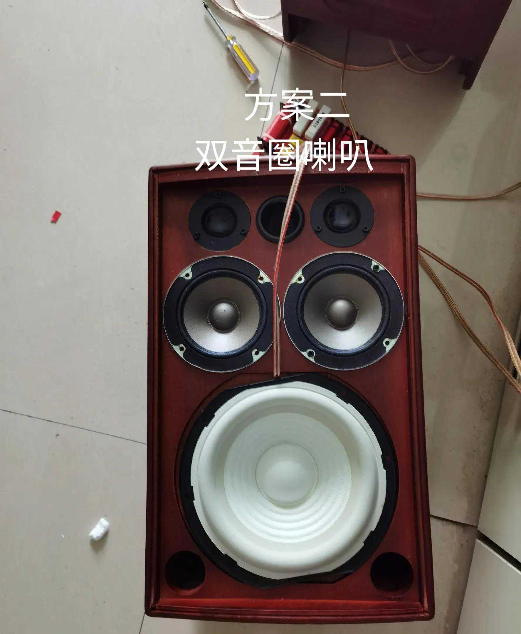 准备工具:一把尺子,一套电烙铁工具,电工胶布,剪刀和美工刀➕手。配件,一对实木箱体,3对喇叭,三分频分频器一对,导向管6个(买错了,只用上了2个,下面两个卡边了只有换辐射喇叭了),被动辐射喇叭4个,音源线20米,接线端子6个,m4螺丝长短各一袋,密封条5米(结果没用),隔音棉几张。然后某鱼某宝量开孔找喇叭。(其实拆了一对箱体,结果还没用上,最后还是现买的)装机过程就简单了,首先喇叭开孔要买对,然后喇叭是4欧还是8欧要想好,最好买一样的,接着正极对正极,负极对负极,就ok了。全过程就是焊接麻烦点,新手刚学,处处冒火,还好都在背面装好也就看不到了。