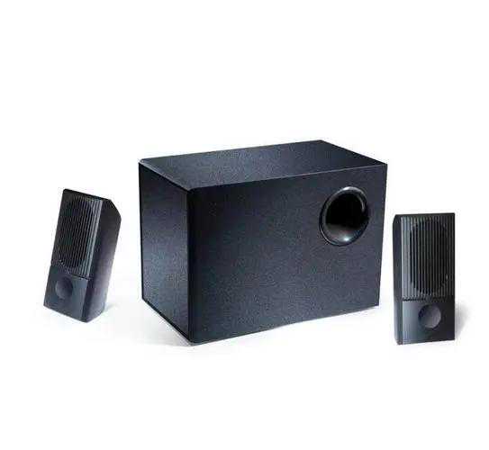 ▲2.1声道:2个音箱再加上1个低音炮,其中的这2个音箱简化了重音功能,集中到了低音炮里。2.1声道的声音定位效果不错,听音乐比较好用,可以清晰地分辨出各种乐器来自的方向,从而使音乐更富想象力,更加接近于临场感受。因此,2.1声道广泛运用于自SoundBlasterPro以后的大量声卡,成为了影响深远的一个音频标准。