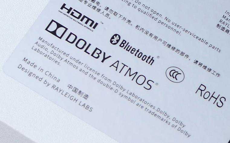 ▲我之前的一款5.1.2家庭影院回音壁系统,机身上就有“DolbyATMOS”字样,即杜比全景声,这是高端回音壁才具备的技术。因为这种技术需要得到Dolby授权,所以一般条形音箱没有标就表明没搭载该技术,自然也就达不到相关效果。