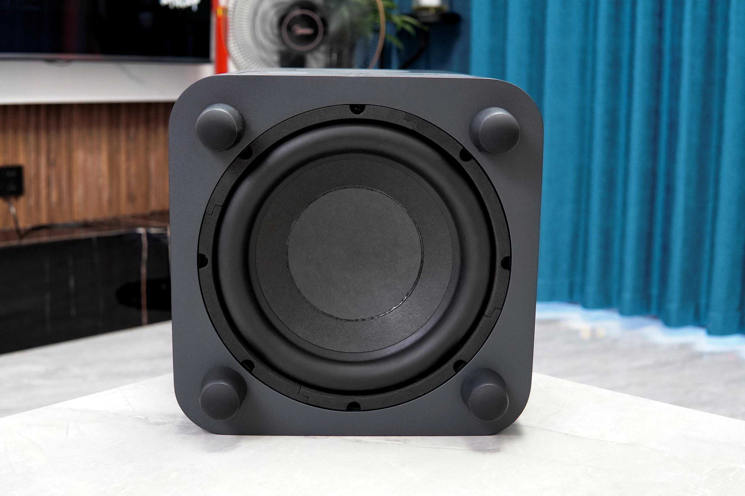 值得一提的是,索尼HT-A5000重低音音箱采用的是前倒相,优点是低频量感足,缺点是可能有干扰声(因为三星HW-Q990C和JBLBAR1000都采用的后倒相,所以这里特别区分一下)。