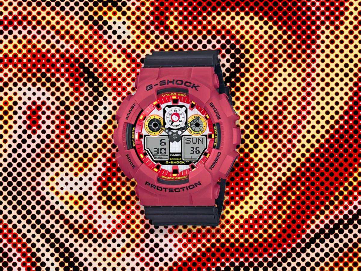 ▲G-SHOCK指针数位双显设计的GA-100DA,12点钟表眼的短指针装饰达摩图案(图/G-SHOCK提供,以下同)