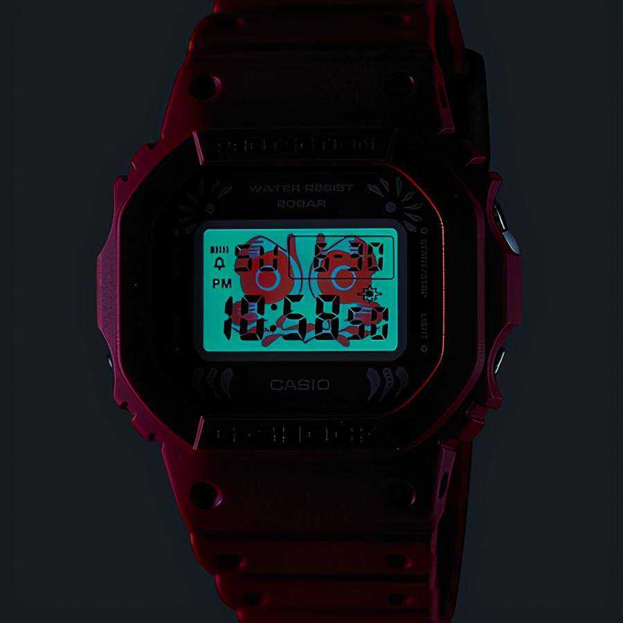 ▲G-SHOCKDW-5600DA当开启背光照明也会浮现达摩的脸孔。