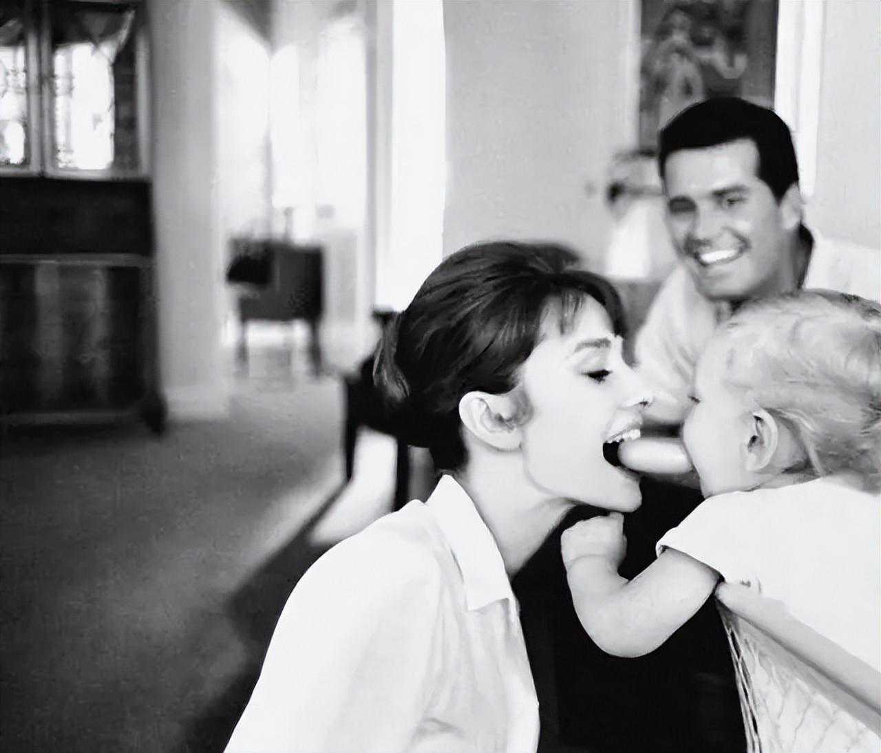 这个比她小9岁的意大利花花公子,留下的二人合影极少。也许,全世界都不能原谅他对赫本的频繁背叛;饶是如此,第二次婚后立即为家庭息影7年的赫本仍然坚持了11年。(6岁就被生父遗弃的你,究竟是有多渴望爱与家庭…)