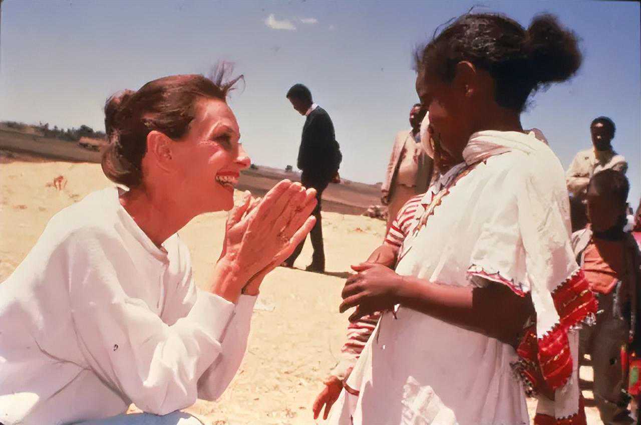 幼年时在二战的炮火中曾经忍饥挨饿的她,曾受到联合国儿童基金会的扶助而吃上了难得的一口饱饭。在罗伯特的引荐下,她毫不犹豫并且怀着最大热忱地投身于公益事业,作为联合国儿童基金会的亲善大使,拉着罗伯特的手,一起走遍了非洲等贫困地区。