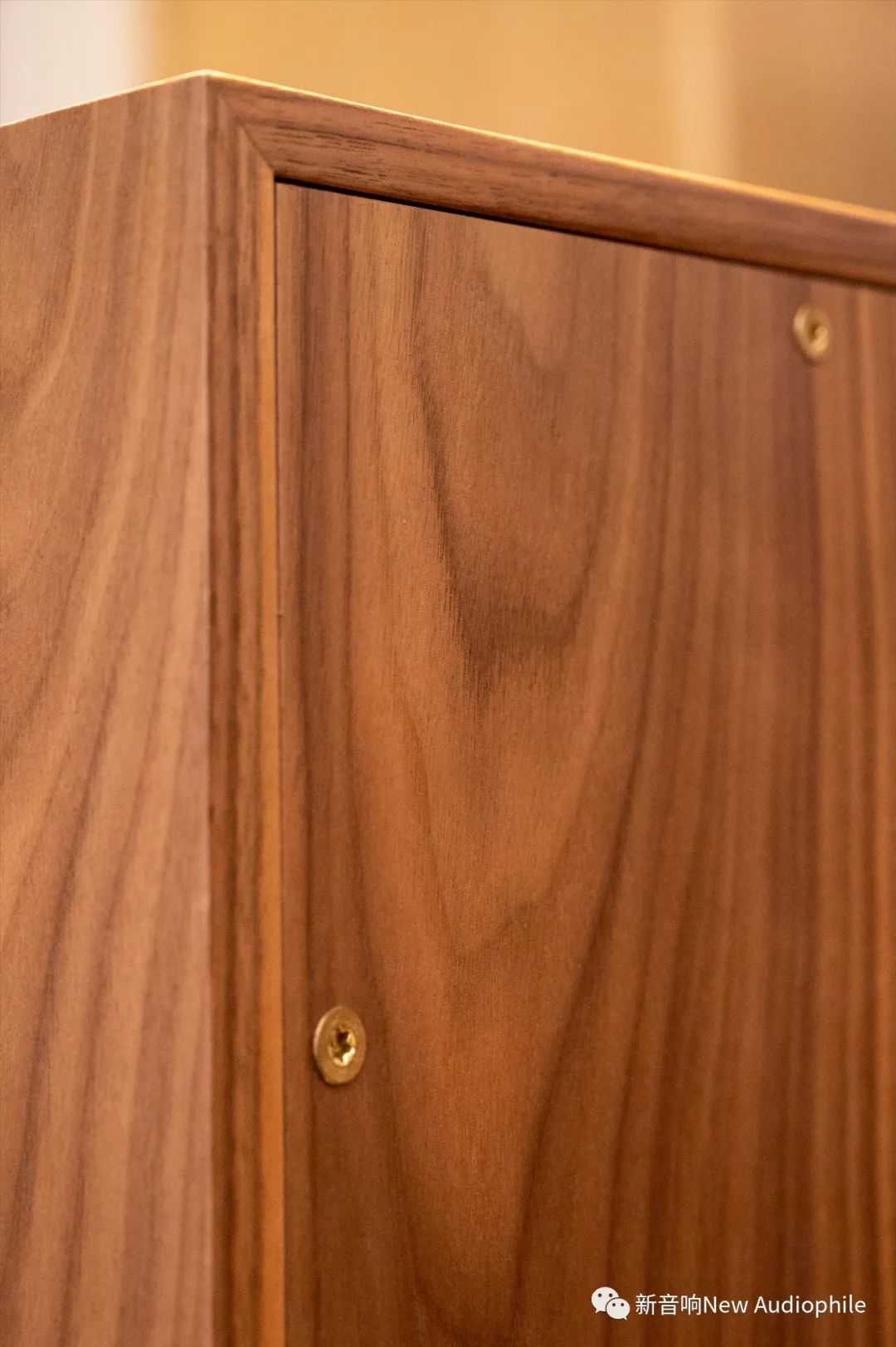 VOTUMAX的箱体构造很有意思,除了采用双箱体式设计,其箱体构造上GrahamAudio坚持延用BBC靓声秘方“薄壁阻尼”方法建造,正面和侧面看不到一颗螺丝,现场从箱体侧面测量薄板厚度仅有12mm,内壁经过严格的测试后在不同地方贴上不同材质的阻尼材料,要利用实木薄箱体自身对音色有益的谐振同时又吸收掉有害谐振,并且是在如此巨大的监听音箱中使用薄箱体也是业界首例了,这种箱体的设计难度并不比采用多种高刚性复合材料的箱体低。