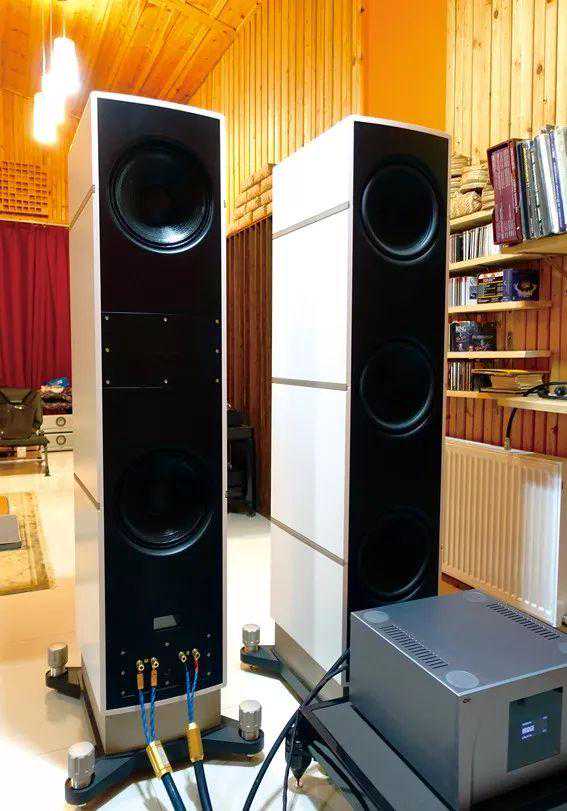 铝制箱体依然是瑞士之声Stenheim的最大卖点,每只扬声器重达300公斤,铝制大外壳内置6个独立声腔,前后每只低音单元分别独立使用一个声腔,中高音由一个箱体装载,另一个箱体则装载分频器等组件,整个箱体内元件高达一千六百多个。