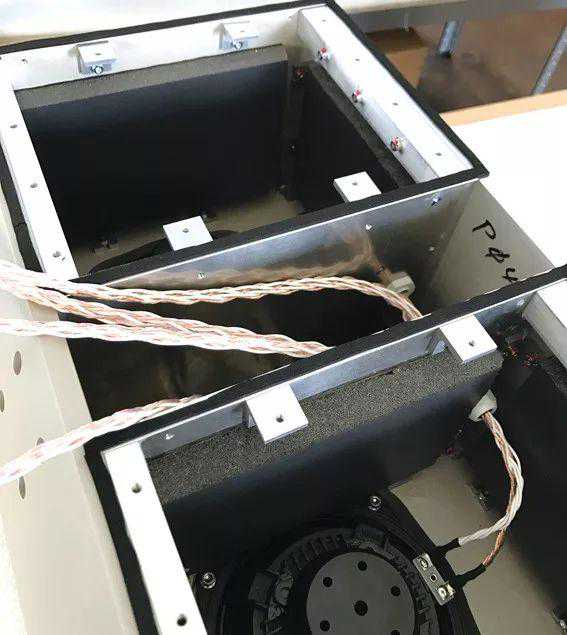 瑞士之声Stenheim箱体内部全部采用美国金宝的顶级接线,线材穿过铝板时为了完全密封,还用上Syntec的精密接插件