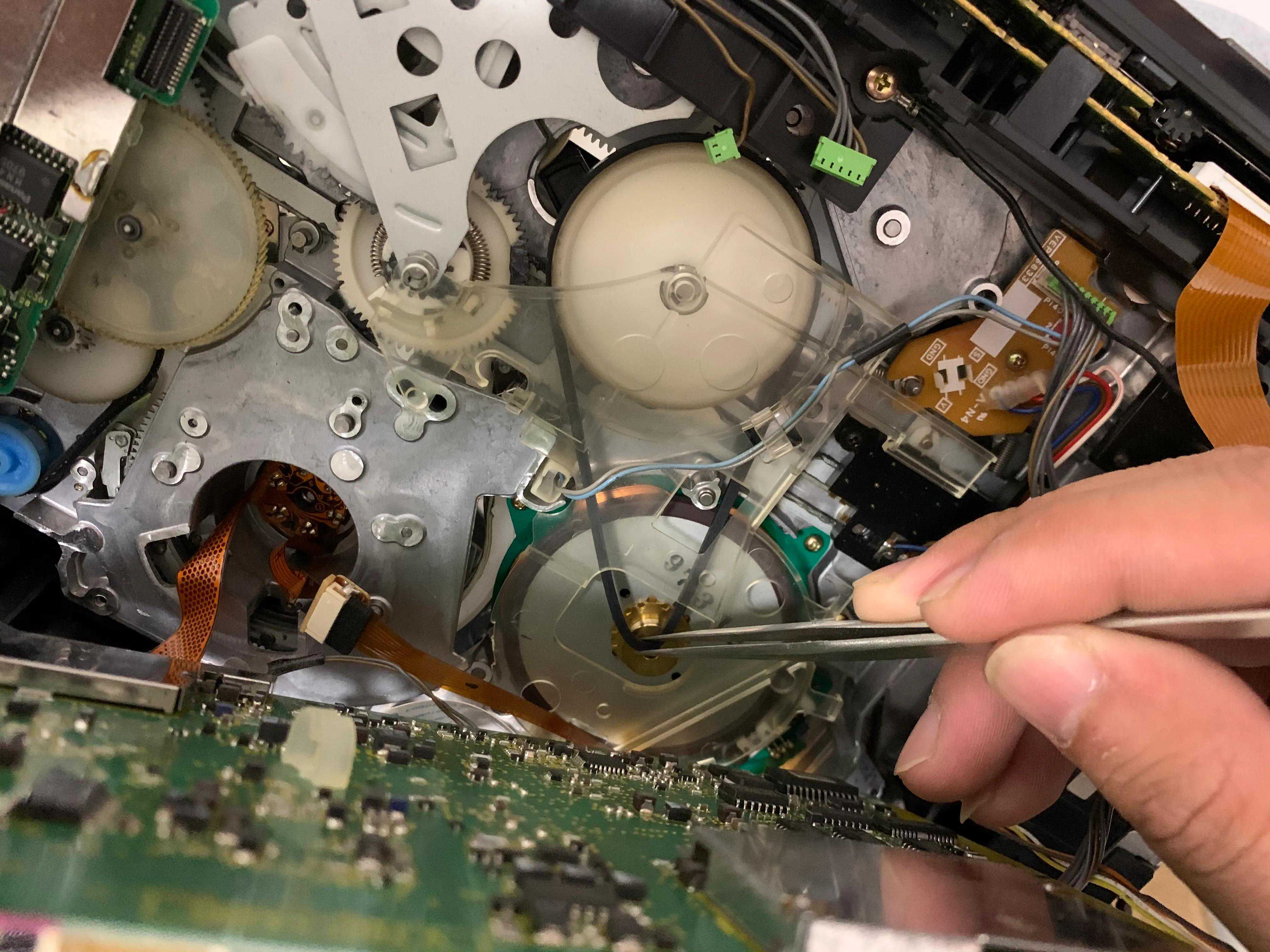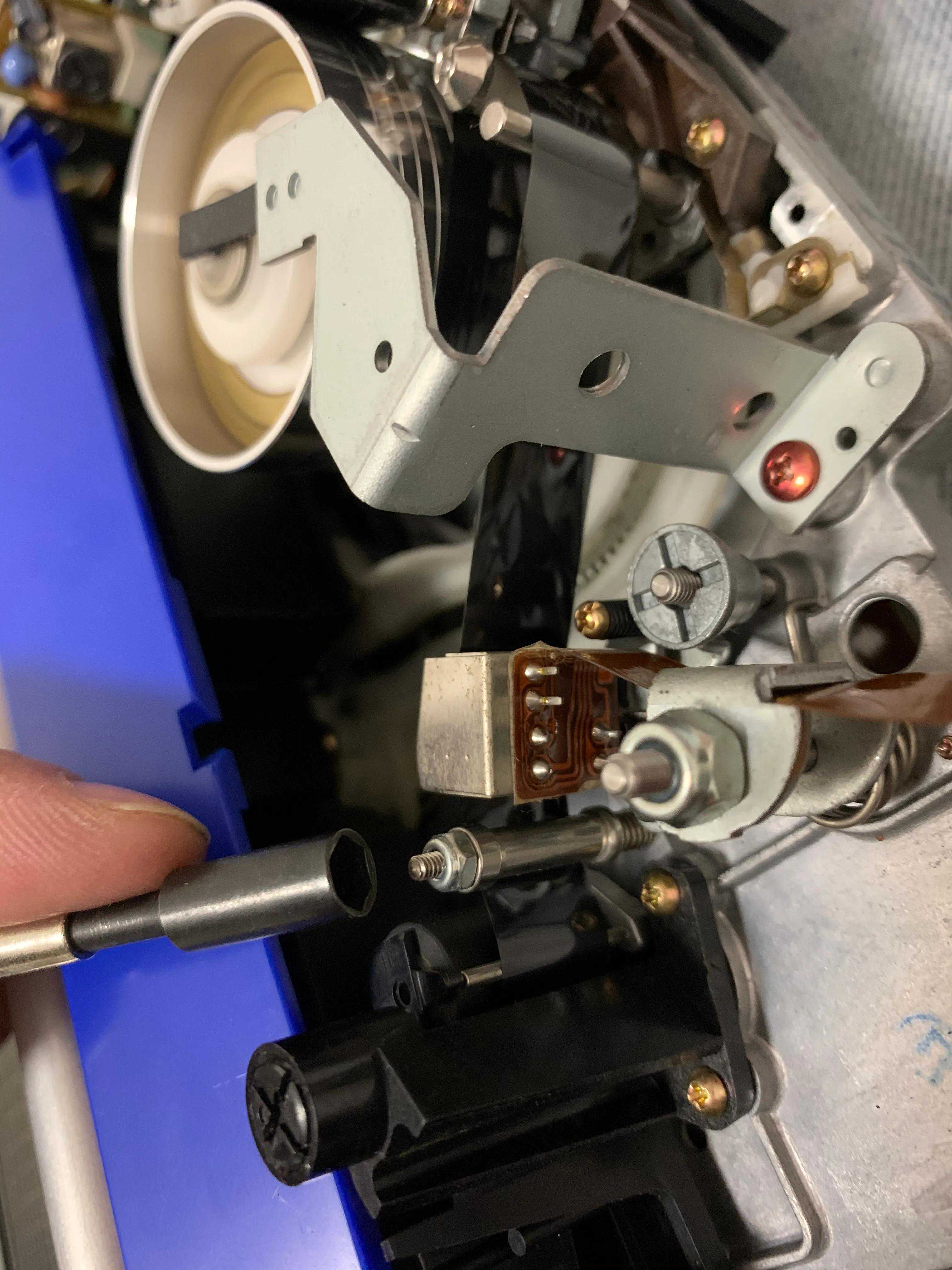 开机后数秒自动保护关机,首先排除因温差导致内部结露报警关机,或者低电量。这种情形尤其易发生在用超长磁带时,仓门闭合后开机,卡住空转,按键无效,不能加载读取或弹出。多次尝试开机紧接着快进数十秒,然后再按播放或退带键,有大几率执行指令动作。此故障一般为机内主导轴传动皮带老化打滑所致,需要清洁或更换。
