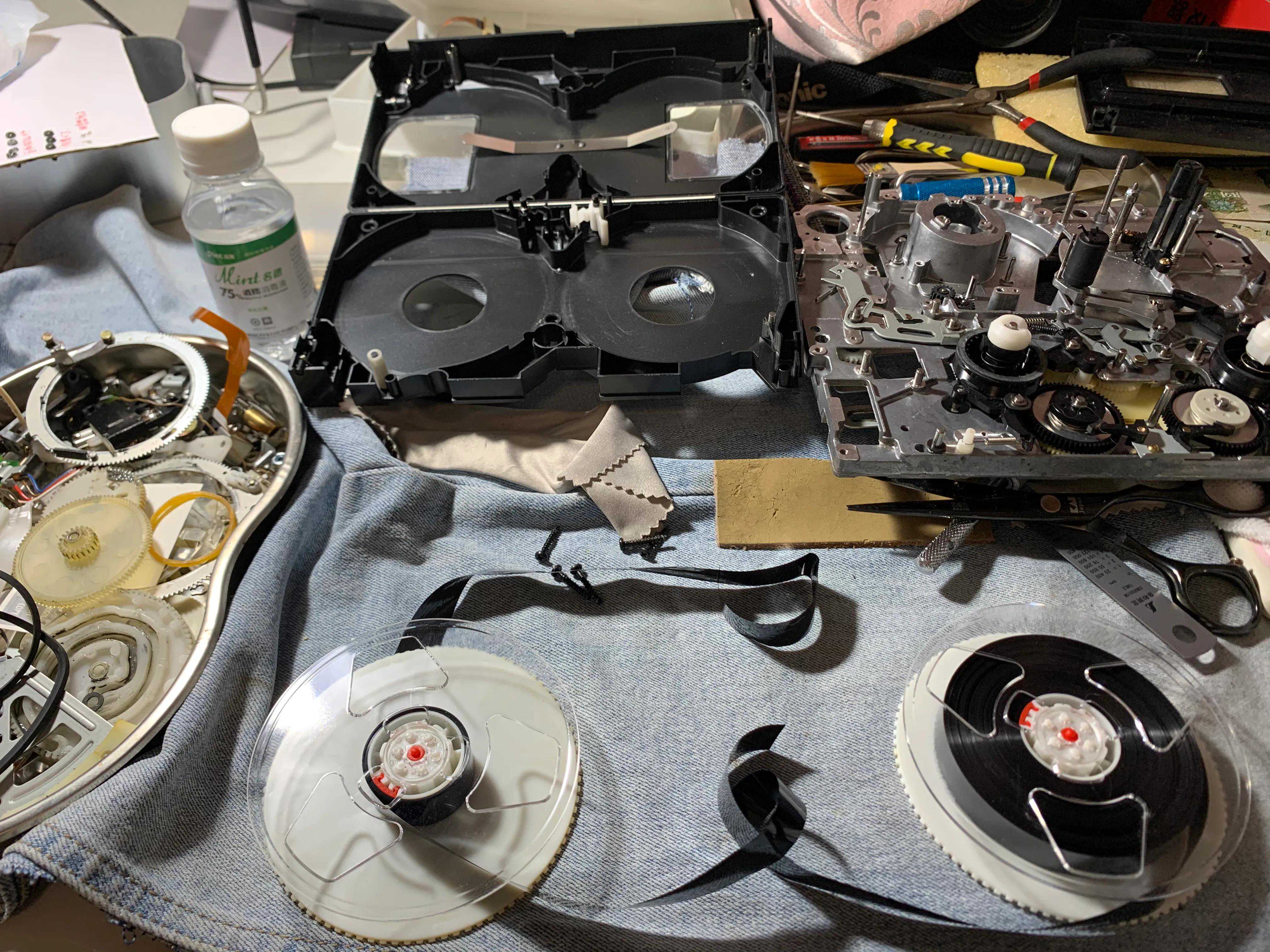 脏污发霉磁带粉尘污染磁头,带盒内左右滑柱粘连不走带,错误的维修拆装霉变录像带,带基断裂正反误接或翻转卷存,壳体碎片弹簧螺丝异物掉落等等录像带本身问题芜杂不一而论自行排查。