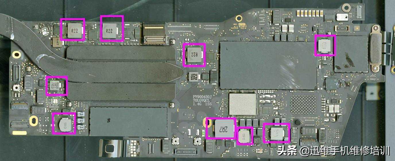 采用intel方案的MacBook笔记本,与iPhone手机、iPad差异很大。iPhone手机和iPad供电都只采用一个电源,负责AP部分的供电。芯片内置PWM模块,时序概念不强,只要有扎实的手工就可以,手机供电电源芯片如图所示: