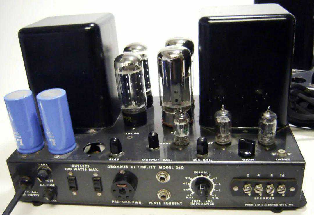 SoundSales最著名史上最早的Tri-Channel三路电子分音系统,低音用KT61(22W),高音用ECL80(1.5W),中音用KT61(10W)