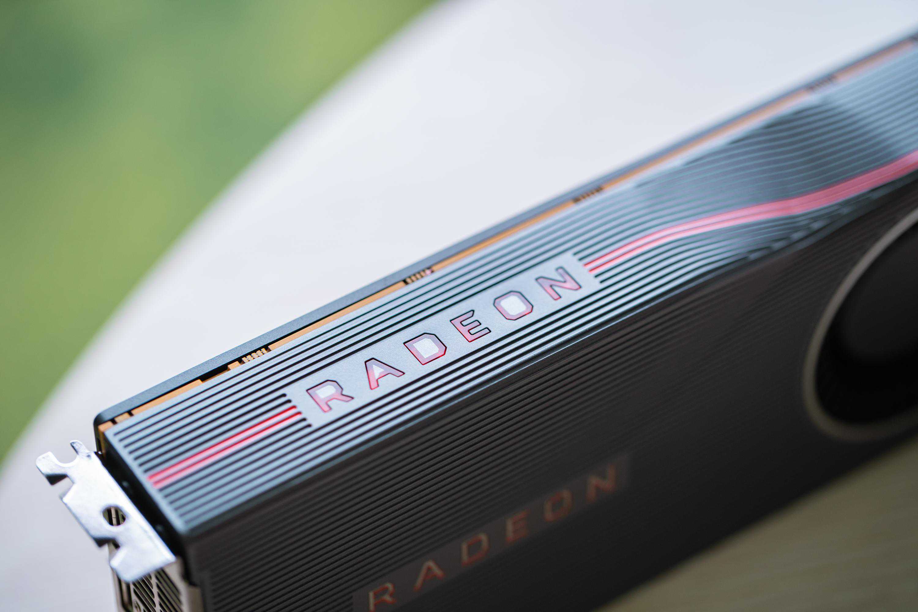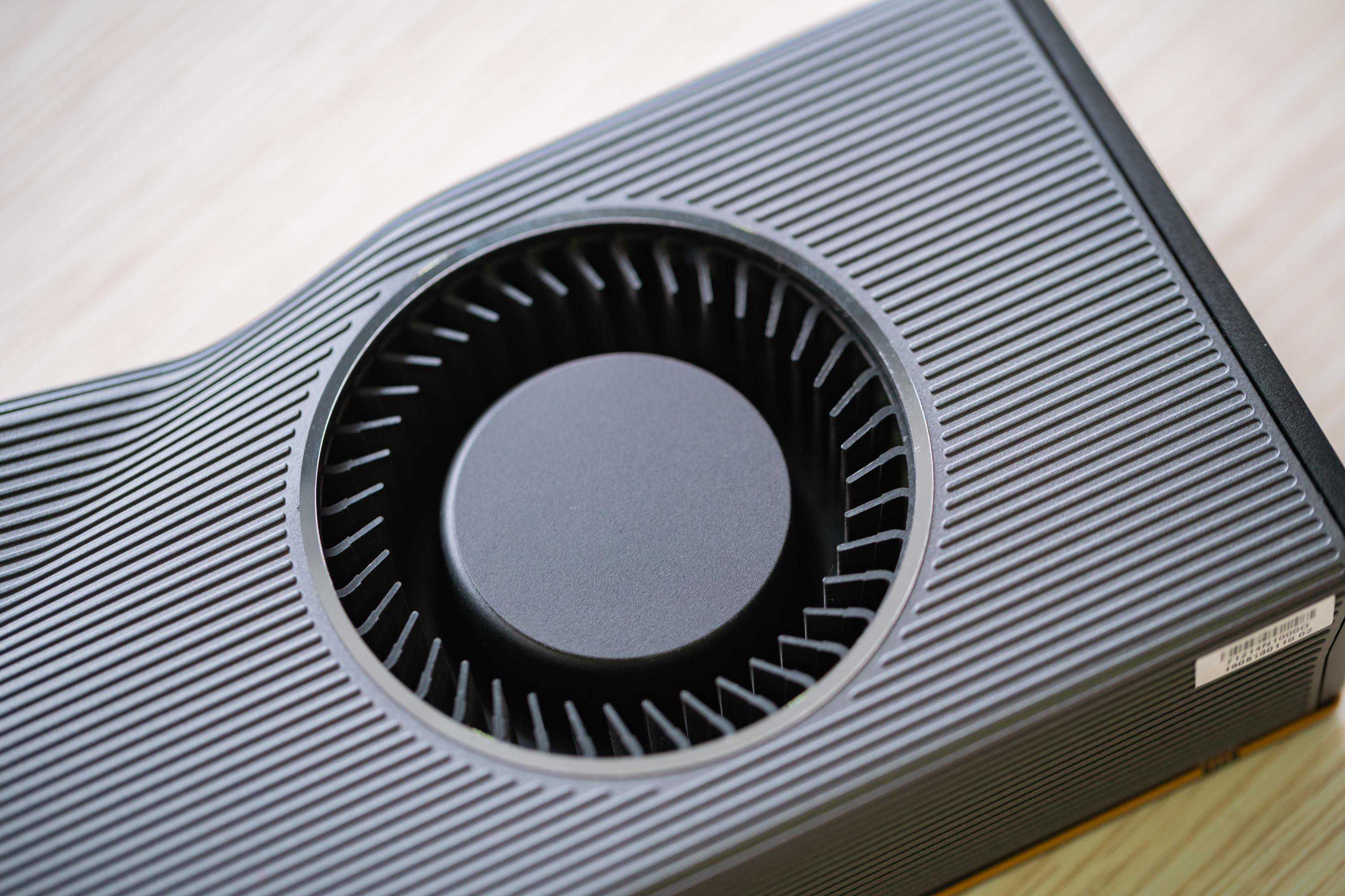 公版5700XT采用涡轮散热设计,外观相较于方方正正的5700显得很有质感,材质虽然都是铝合金,但是表面的RadeonLogo和线条处理,加上苏妈亲手捏出来的凹陷,再搭配顶端的红色信仰灯,可以说这款卡满载着A粉的信仰。