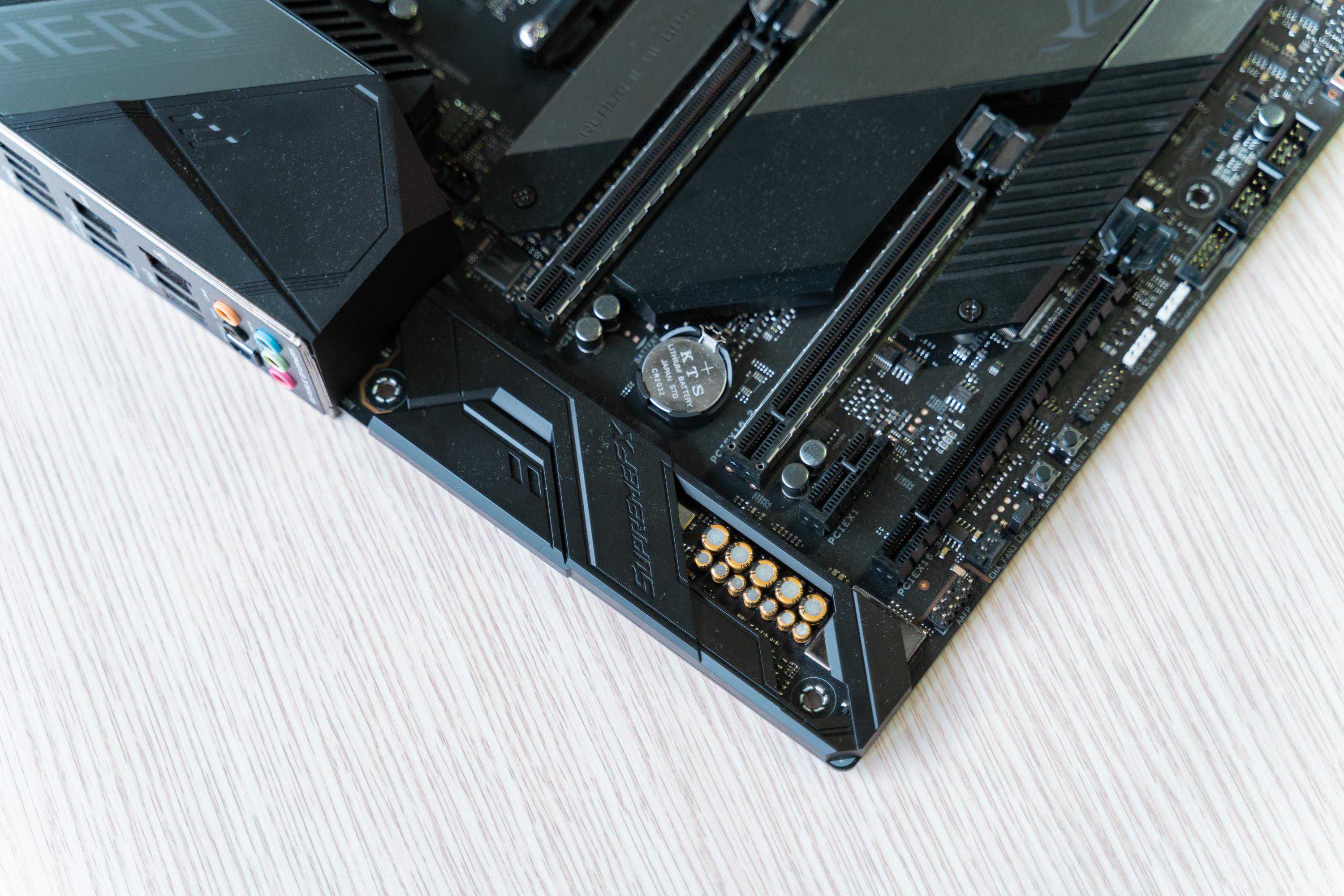 ROGC8H是ATX版型,尺寸为30.5,采用了非常扎实的14+2相供电和8层PCB设计,供电接口为8+4pin,拥有两个支持的插槽。相比前代,最直观的感受就是包裹几乎整个面板的大面积散热装甲。