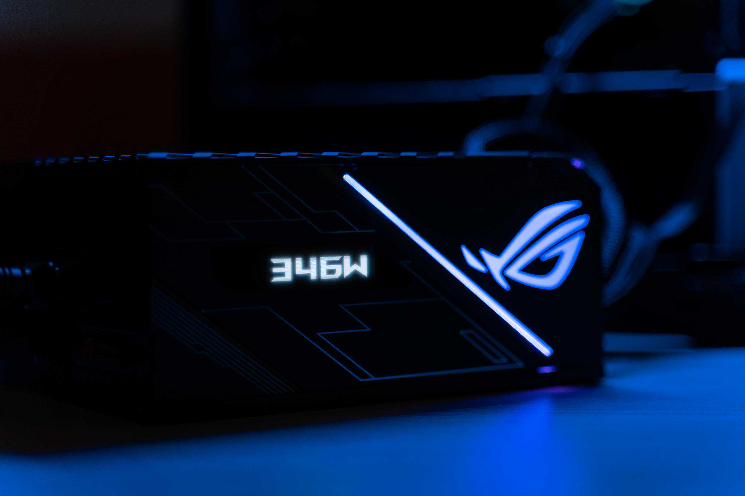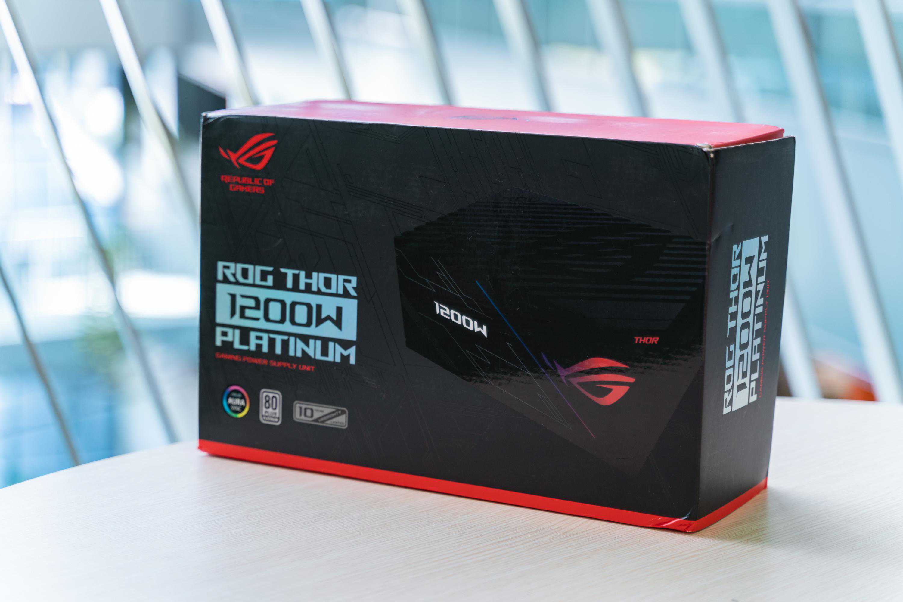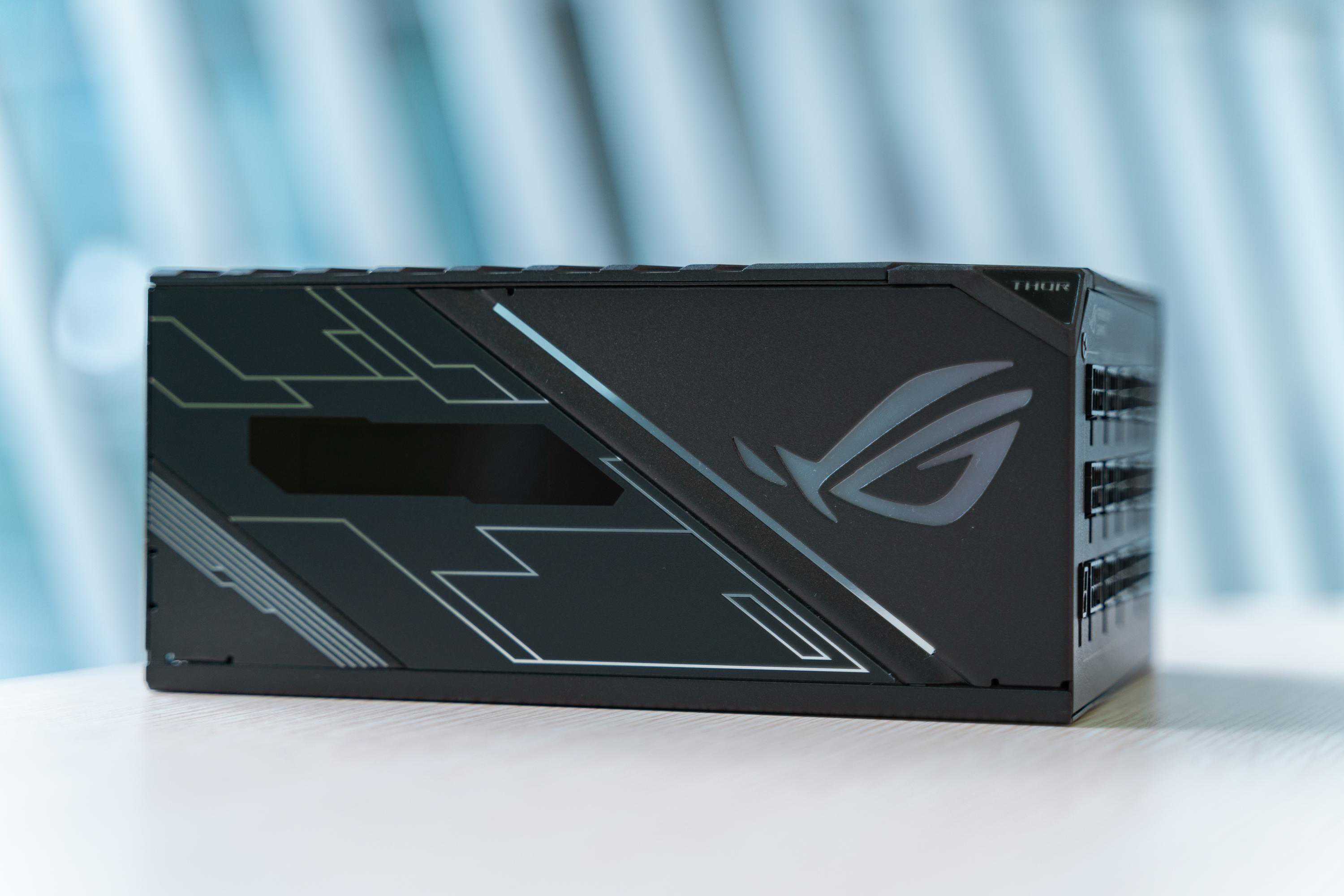 本次攒机的最后一个零件就是这颗ROG雷神1200W80PLUS白金认证电源,ROG开创性地给这颗电源加入了一个OLED显示屏,可以实时显示功耗,不光如此,这颗电源还带有信仰灯支持AuraSync神光同步。
