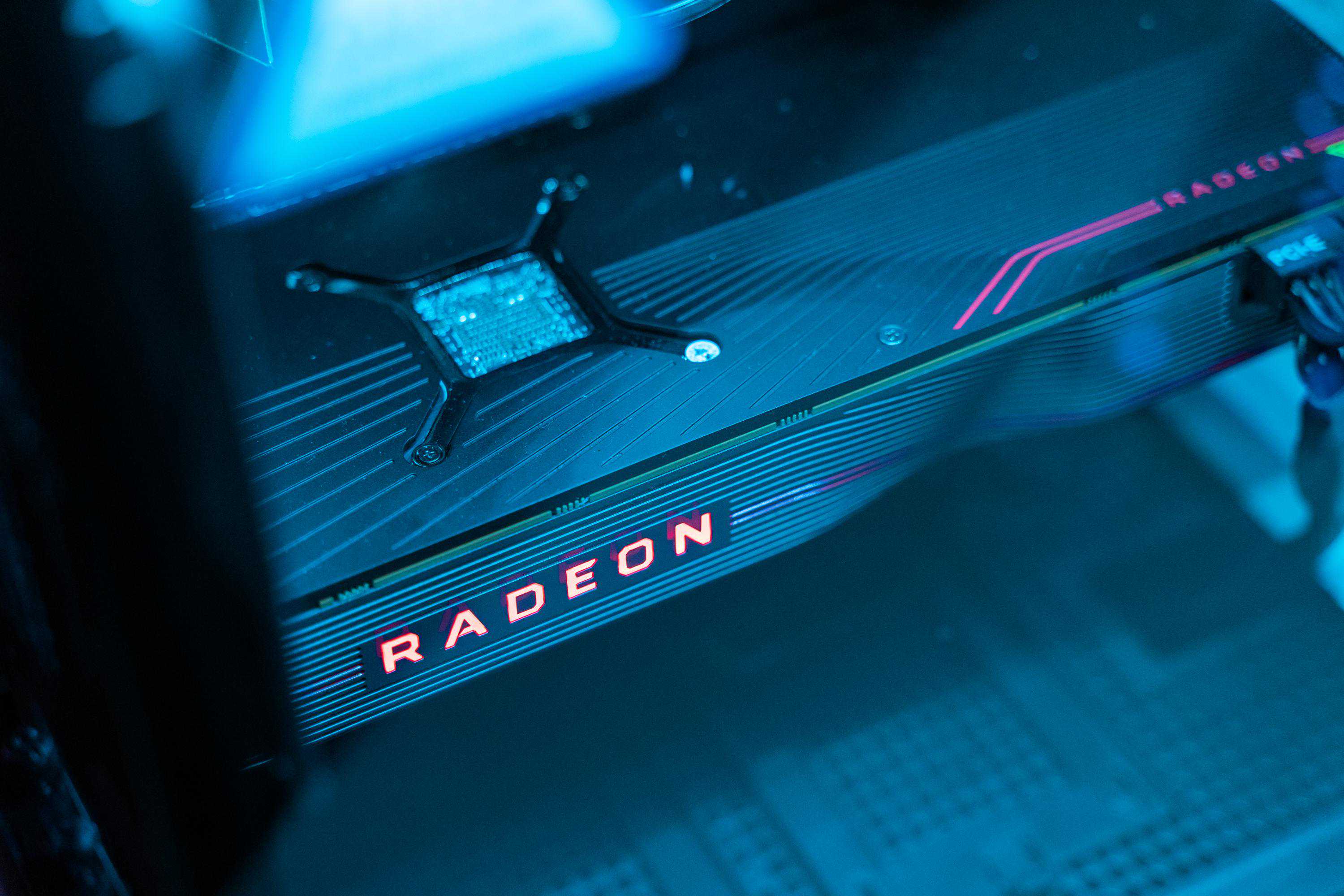 5700XT的公版信仰灯,通过侧透玻璃显出带感的重影效果。