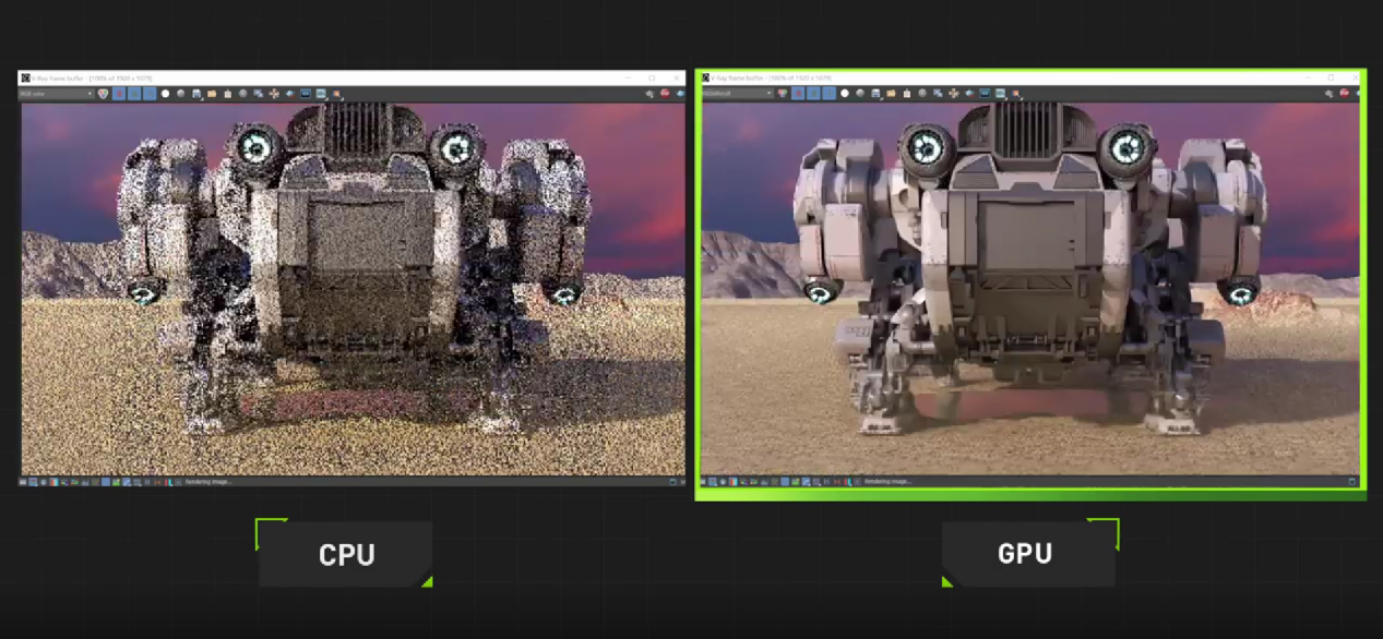 在建模渲染类软件中,技嘉RTX4090GAMINGOC魔鹰24G都可以利用CUDA为工作提供硬件加速,目前几乎所有的建模软件都会对NVIDIA的GPU有优化,所以能做到效率、稳定和兼容性的共存。比如在常用的渲染工具V-Ray中,可以借助RTX加速的光线追踪,实现高性能最终帧渲染。借助搭载AI的降噪功能,GPU可进一步加速交互式渲染。