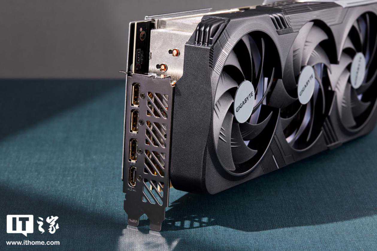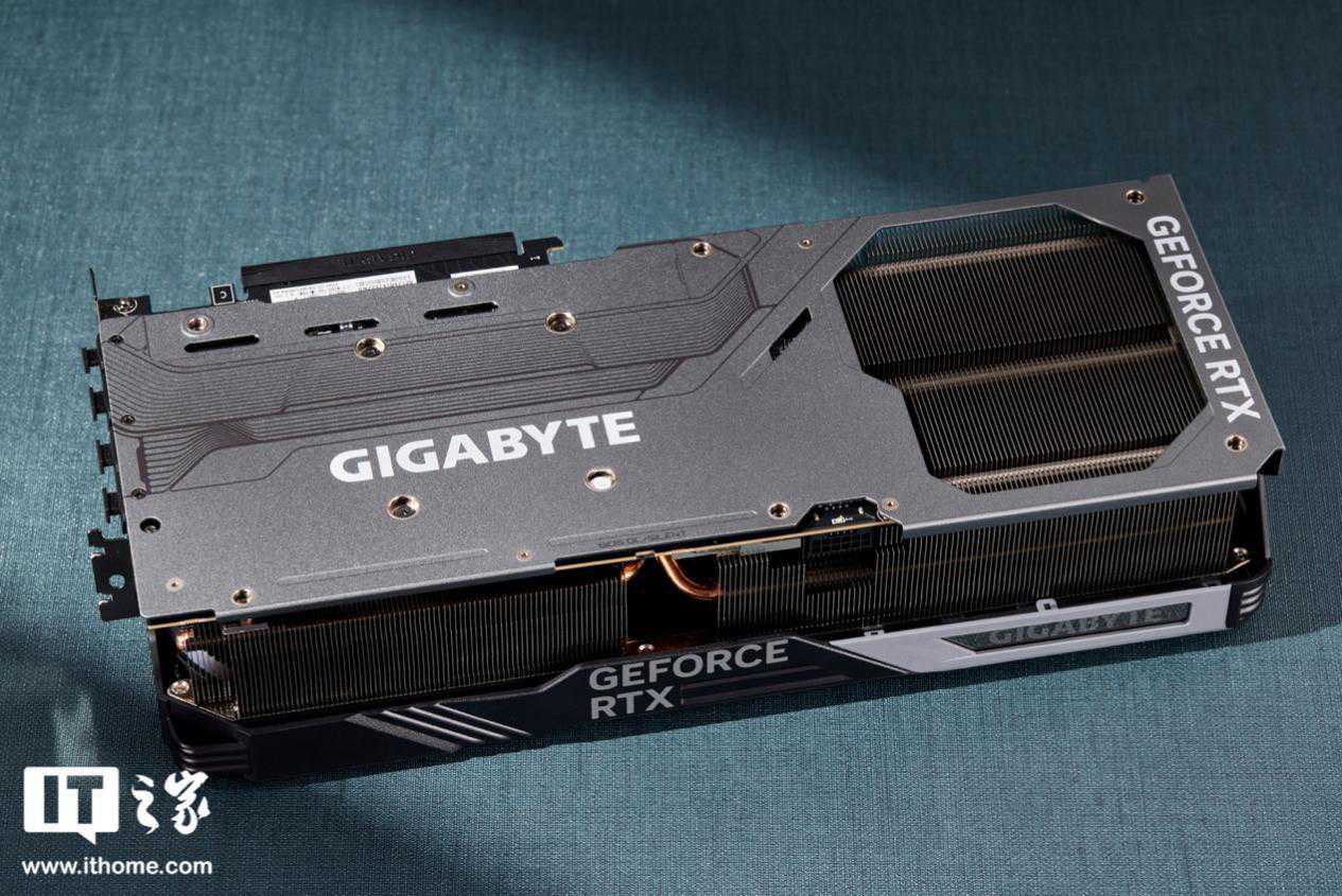正侧面为开放式设计,底部包裹着显卡的金属外框和技嘉logo灯,上半部露出巨大的散热格栅和导热铜管。