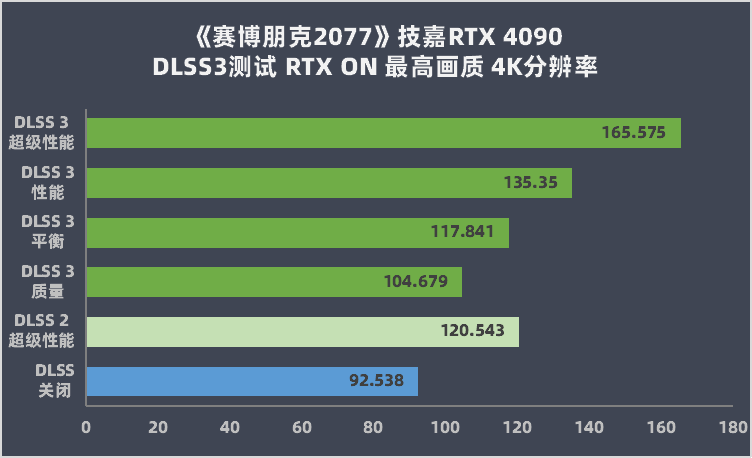 但如果我们开启最新的DLSS3技术,技嘉RTX4090GAMINGOC魔鹰24G显卡帧数直接来到了平均168帧,比不开DLSS提升了3倍多。至于具体的游戏帧数提升,我们稍后统一进行测试。