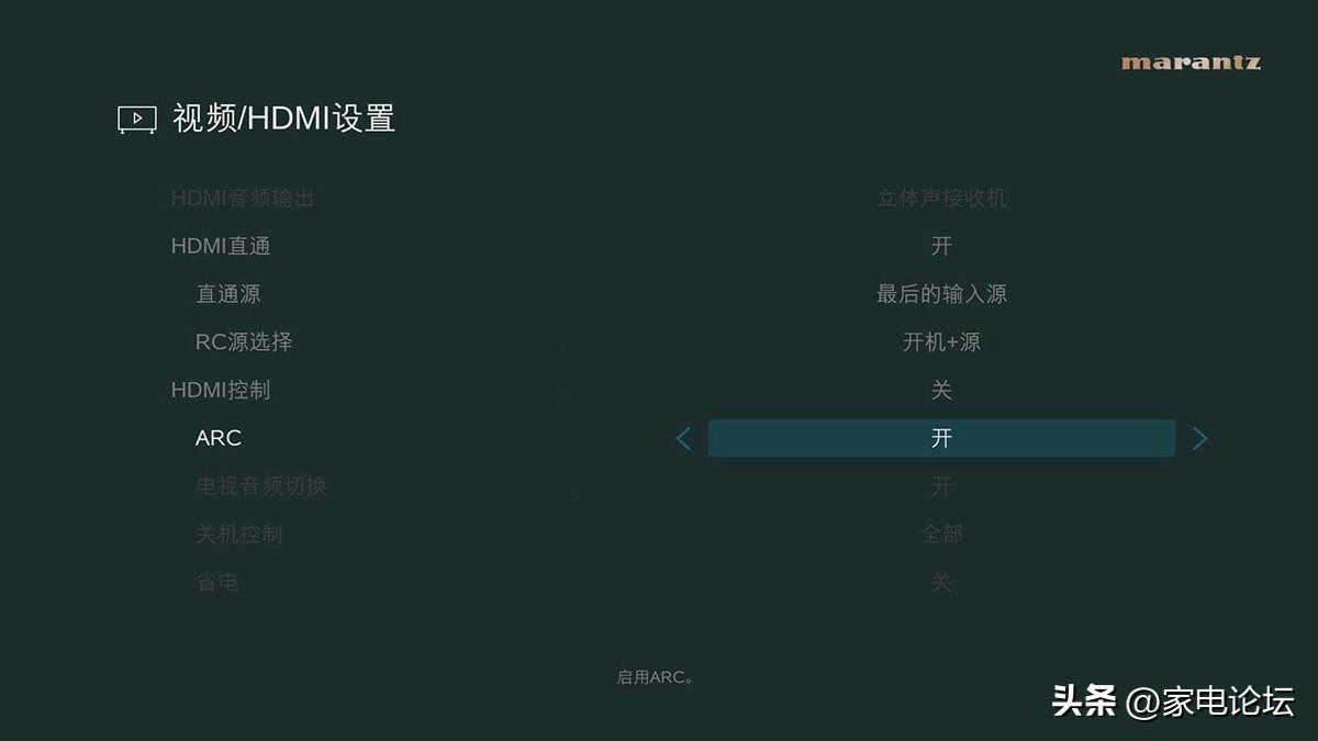 连接电视机后就可以在功放菜单的扬声器选项中进行精确设置,通过Stereo70s内置的声音校正算法,在当前聆听环境中呈现出最佳音质效果。切记要在HDMI设置中打开ARC音频回传功能,电视机的音频设置也要改为ARC输出后,才能通过这套影院系统播放电视节目中的声音。
