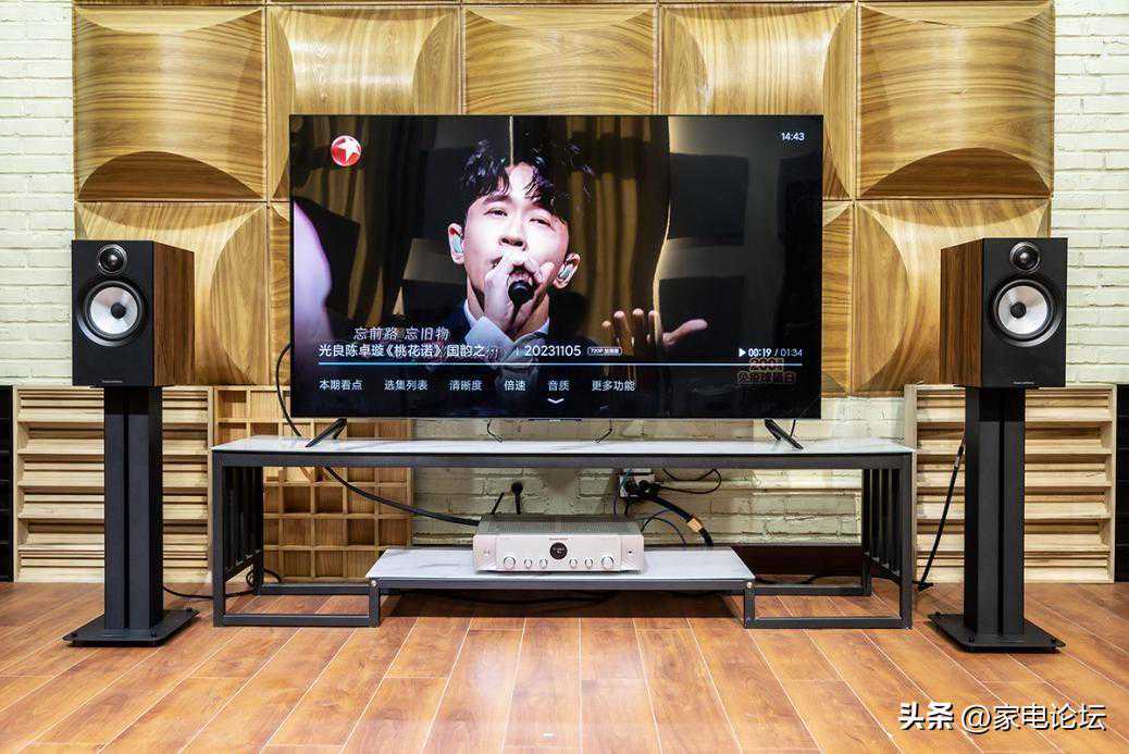 我们先是体验了电视机自带的在线资源,包括影视剧和音乐类综艺节目。首先,相对于电视机自带的扬声器,Stereo70s这套极简风格的客厅影院给到我不仅仅是声压级上的优势,而是音质的全面提升,达到一个高质量的沉浸感观影体验。例如影视剧中人物的对白更加清晰、饱满和突出。声场更加宽阔的同时,让不同人物和背景声都有着较为真实的层次感。尤其在音乐类综艺节目的观看上,能够清晰感知到歌手在舞台上的移动,如果使用更大尺寸的液晶电视或投影机,这种宛如置身于演唱会现场感会更加真实。