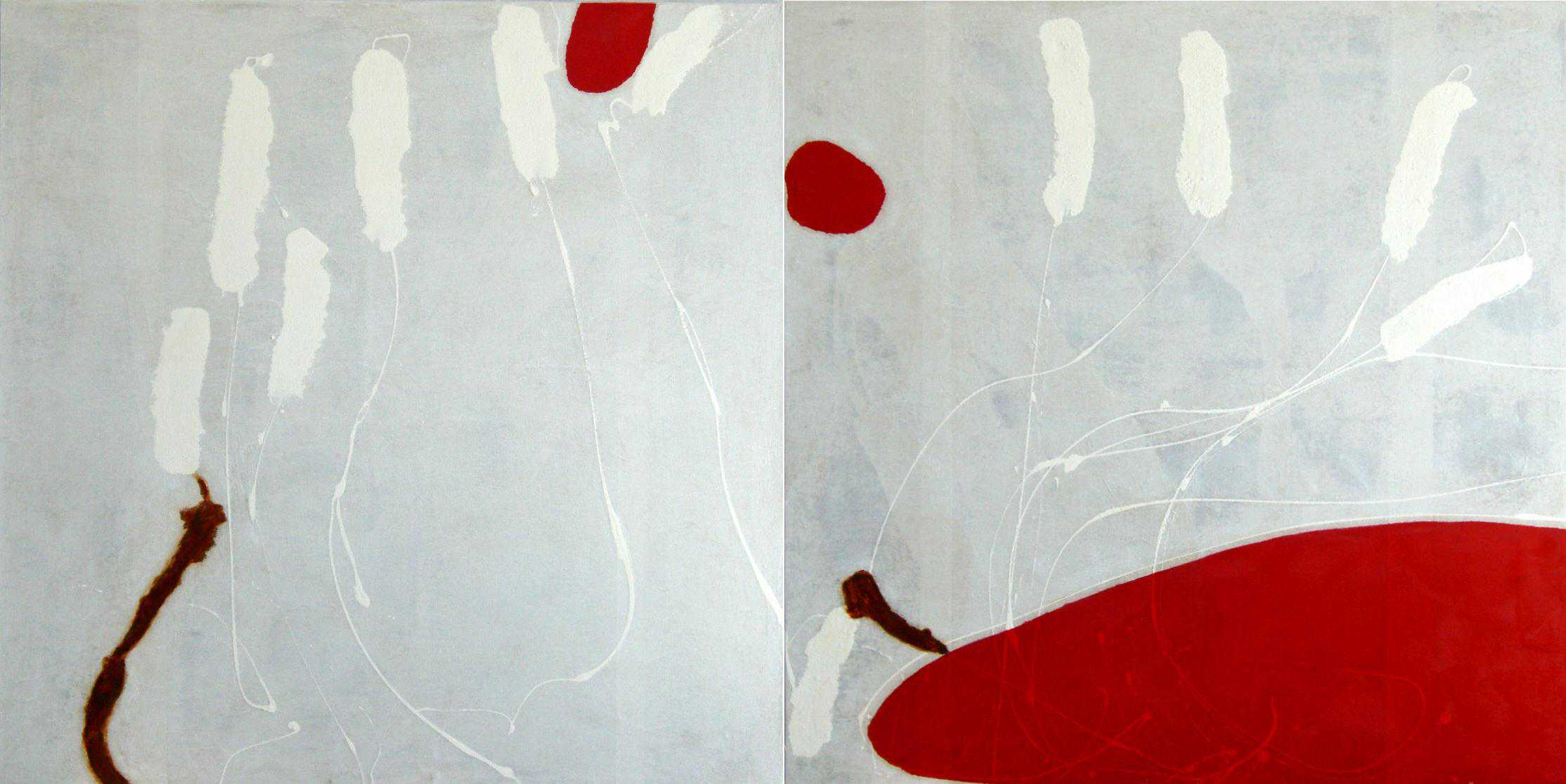 《辰砂》(Cinabre),2008,压克力、油彩、铁锈、蜡/纸裱于画布,200x100公分