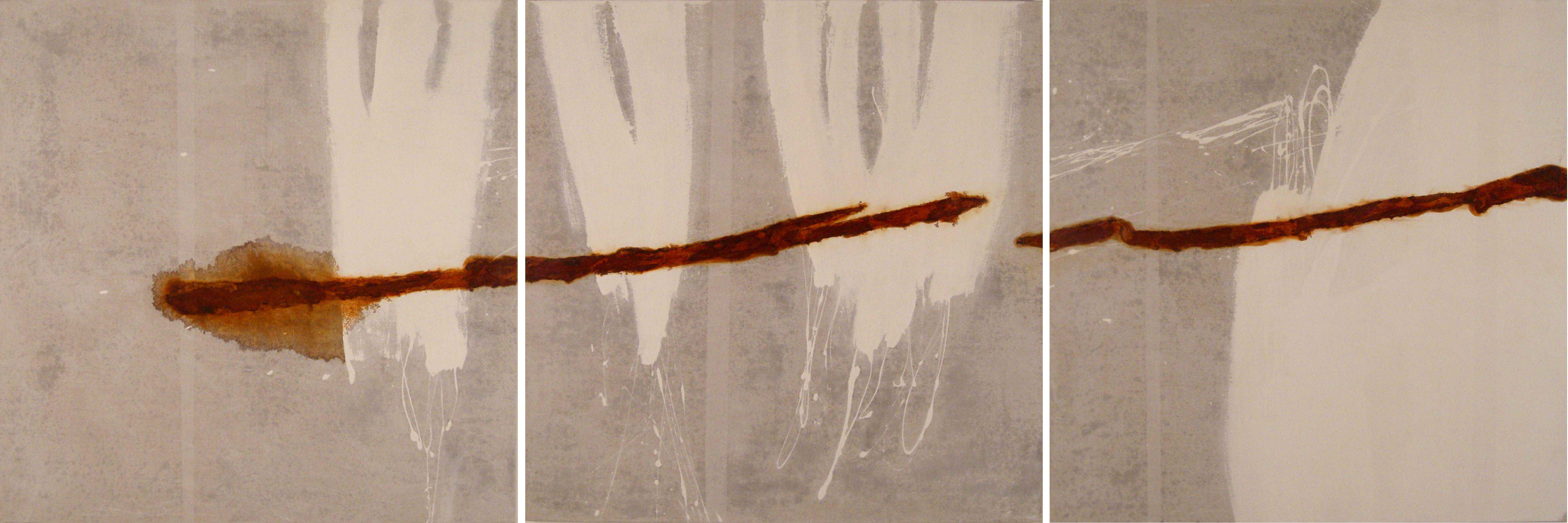 《白色区域》,2010,压克力、油彩、铁锈、蜡/纸裱于画布,300x100公分