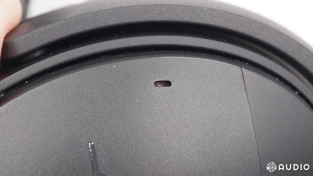 左侧耳罩的3.5mm音频接口,外接3.5mm音频线可以变为有线耳机。