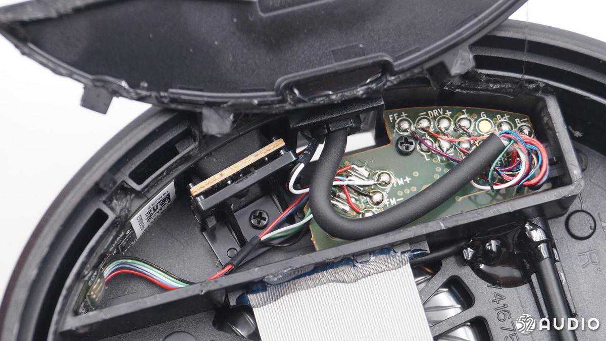 左侧的耳机内部是电池仓,下面可以看到单元振膜的纹路。
