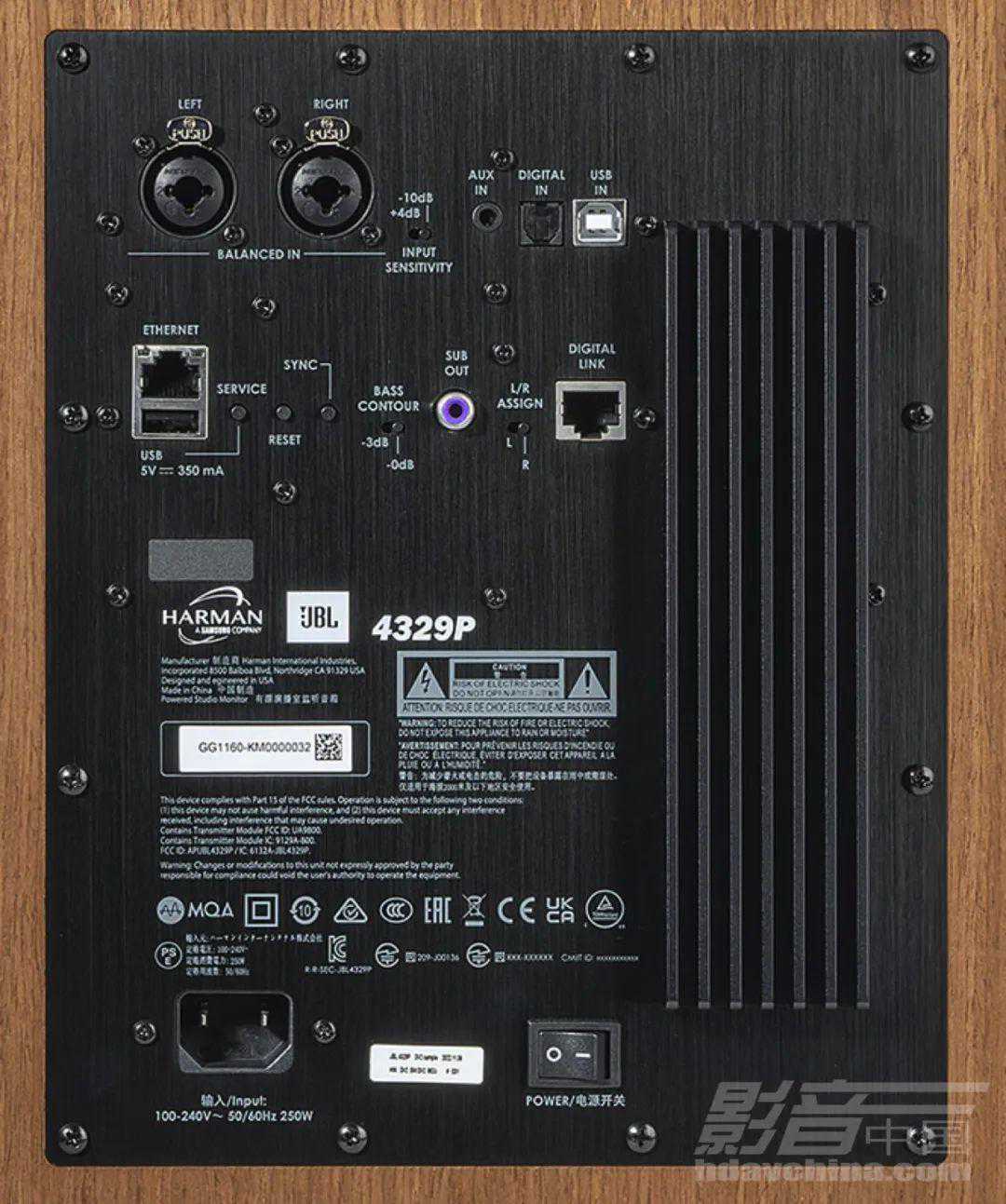 4329P是此系列中的第二弹,配置的单元更大,输出功率也更高。它搭载8英寸口径的JW200P-4中低音和原本应用在ProfessionalLSR7系上的1英寸2409H号角高音。内置600W数字功放,分别给每个高音和中低音单元分配了50W和250W的输出功率,并且采取数字分频。其他方面,包括192kHz/24bit解码,蓝牙、AirPlay2、Chromecast无线输入以及RoonReady。有线输入则有USB、光纤、LAN、模拟XLR、3.5mm,并支持超低音信号输出。