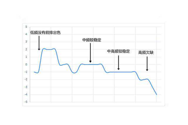 高频部分很明显差了很多,这是由于后排没有高频扬声器所导致的。