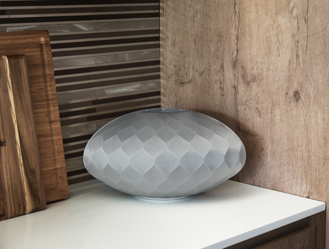 这支音响在外观上模拟了星球的样式,似乎很难被发现它的艺术表达。可一旦你将音响的防尘罩摘下,你就能发现如陨石坑一样布置的喇叭单元。